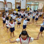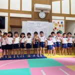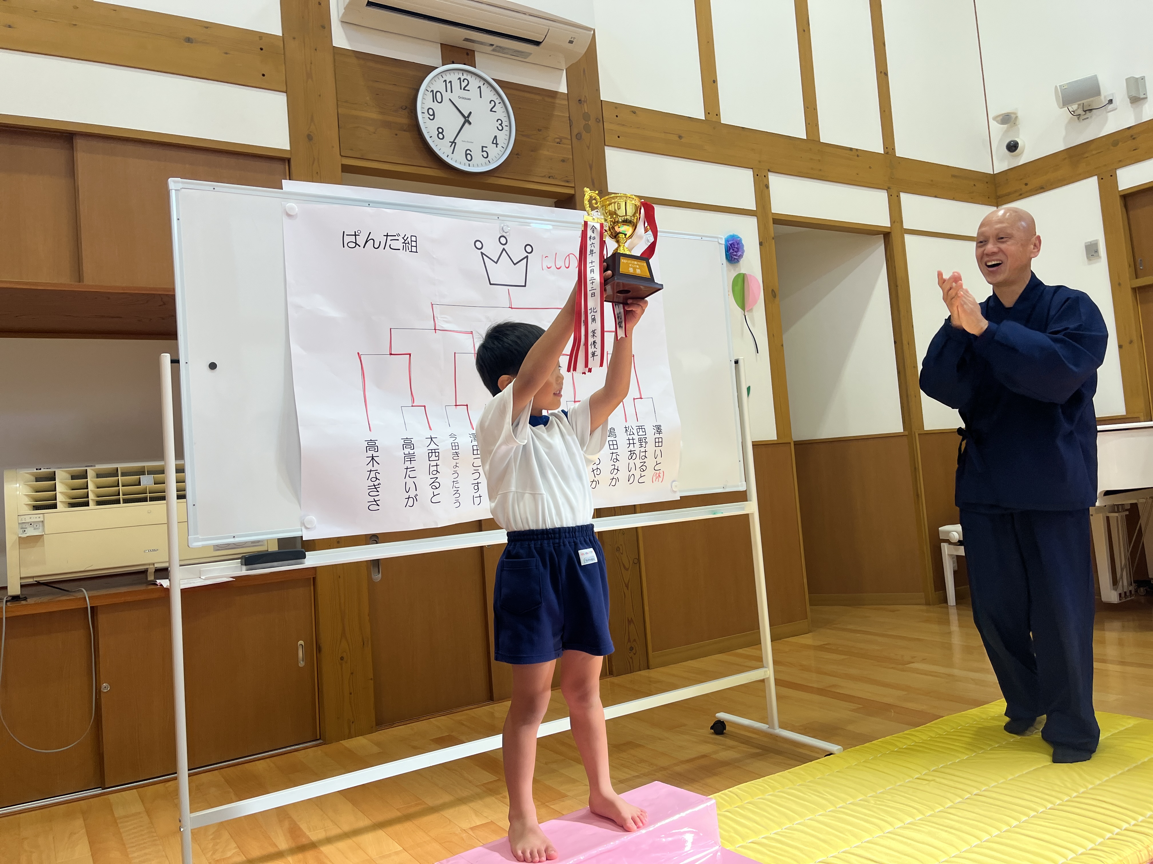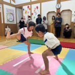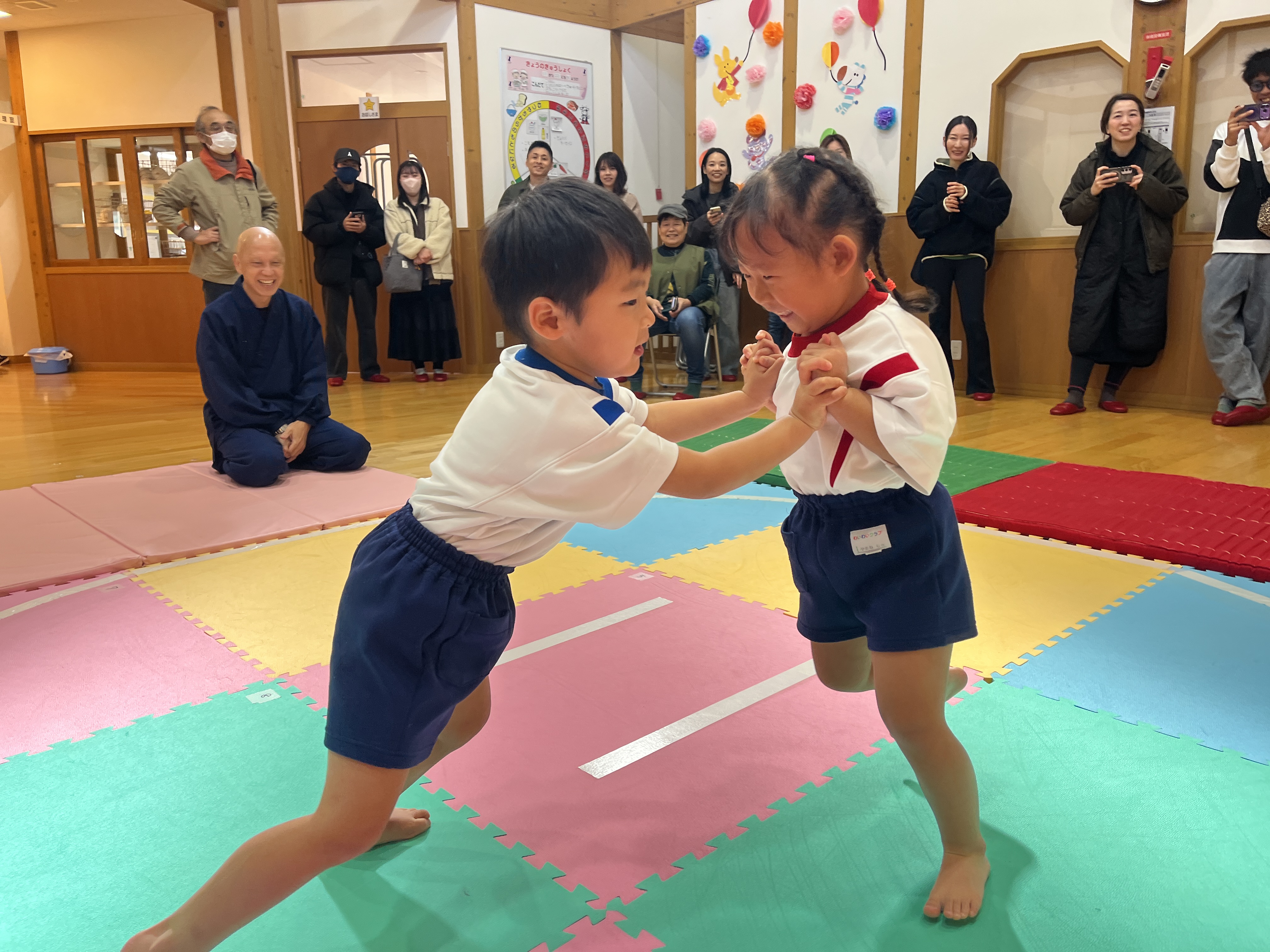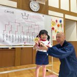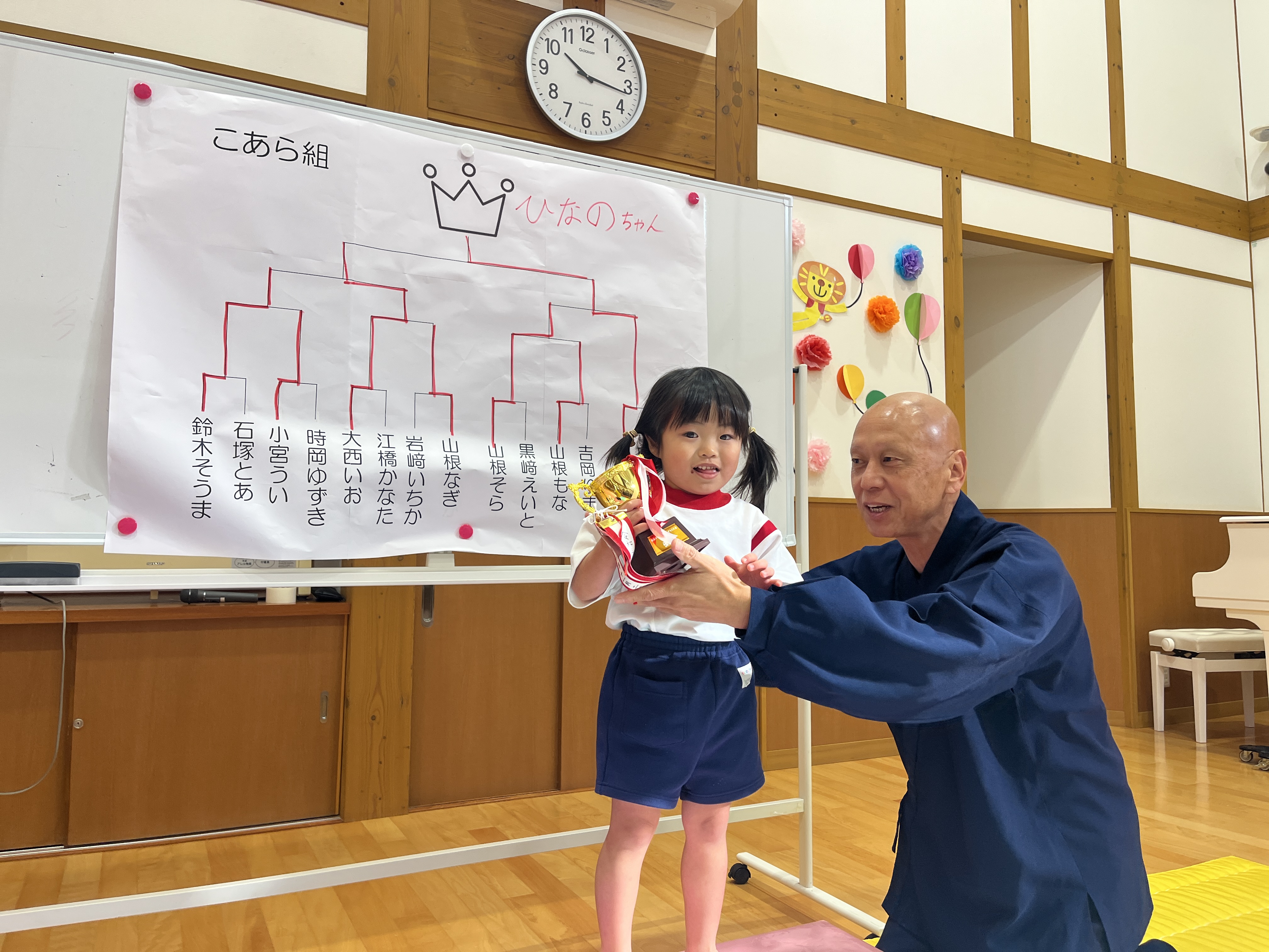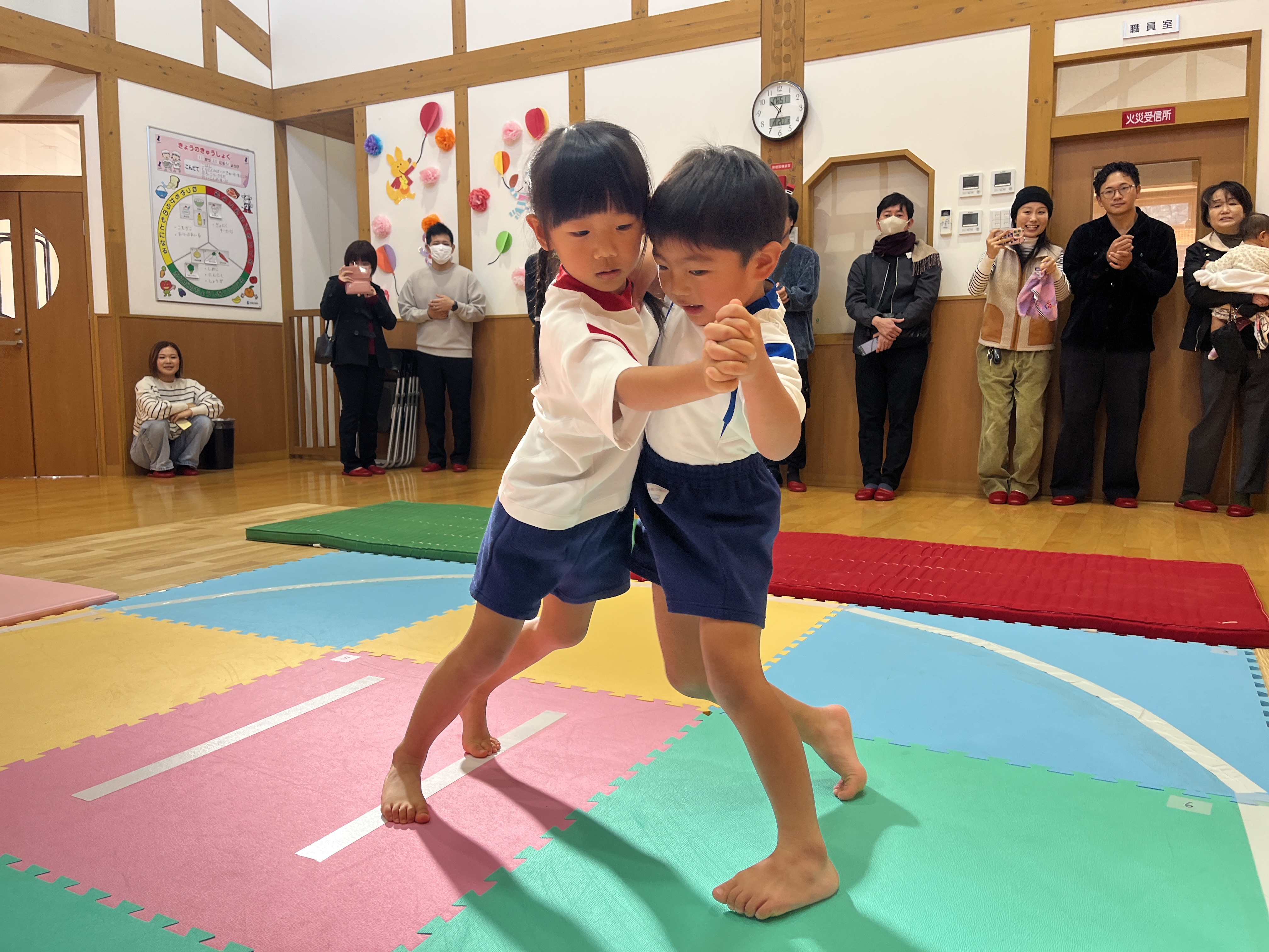 - 土俵際で粘ったり、こけそうになっても踏ん張ったりと、きりん組らしい取り組みがたくさん見られました。