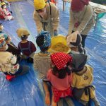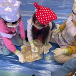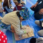 - 一人ずつ、「おいしくなあれ!」と言いながらみそ樽の中に空気が入らないように投げ入れました。
