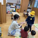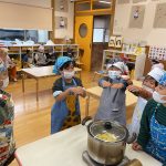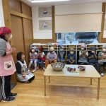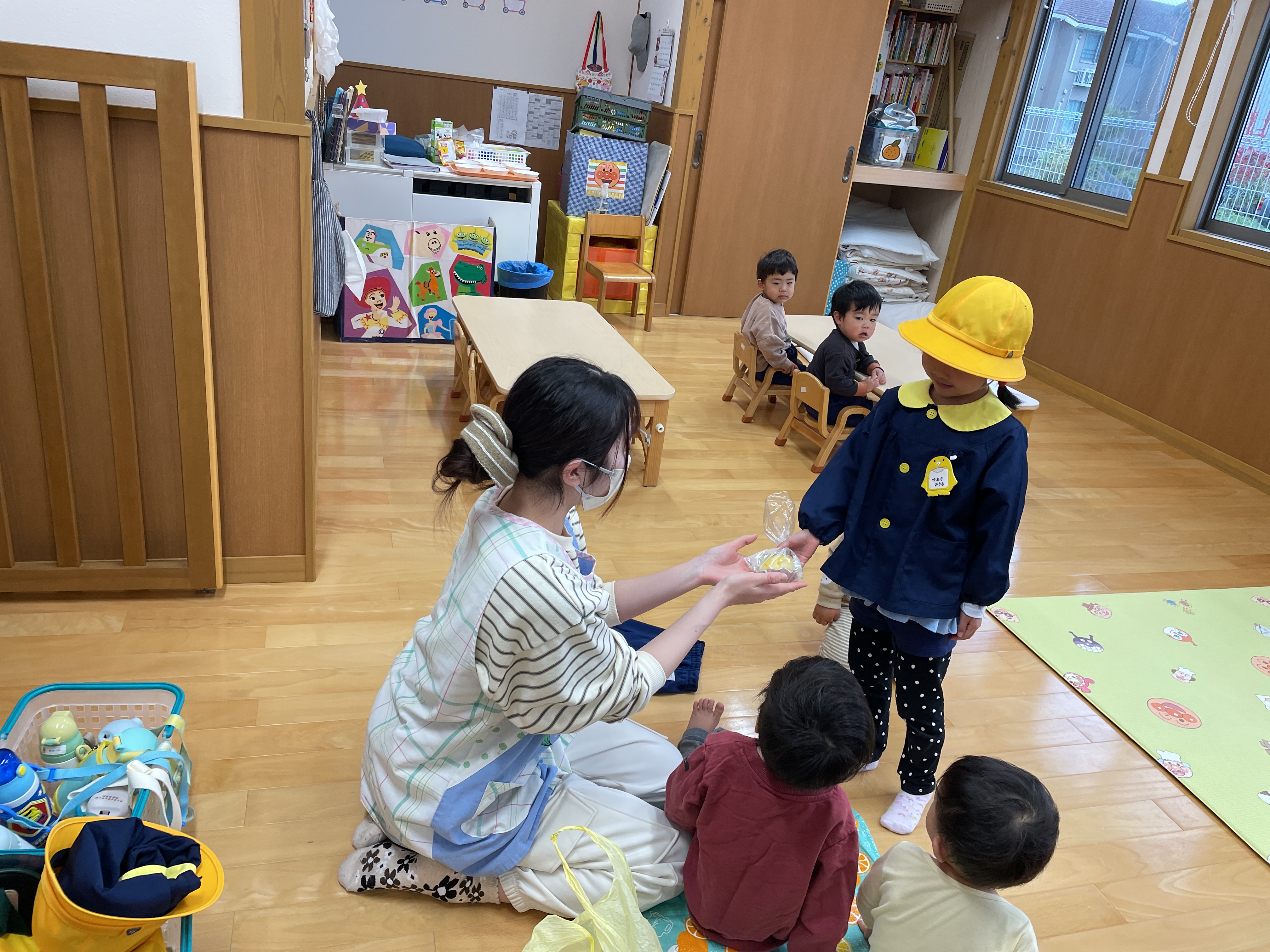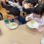 - 作ったスイートポテトを先生たちにも配って回りました。「おいしくできました」と言いながら渡していました。