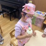 - お友だちとペアになって交代しながらペットボトルを振りました。
