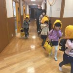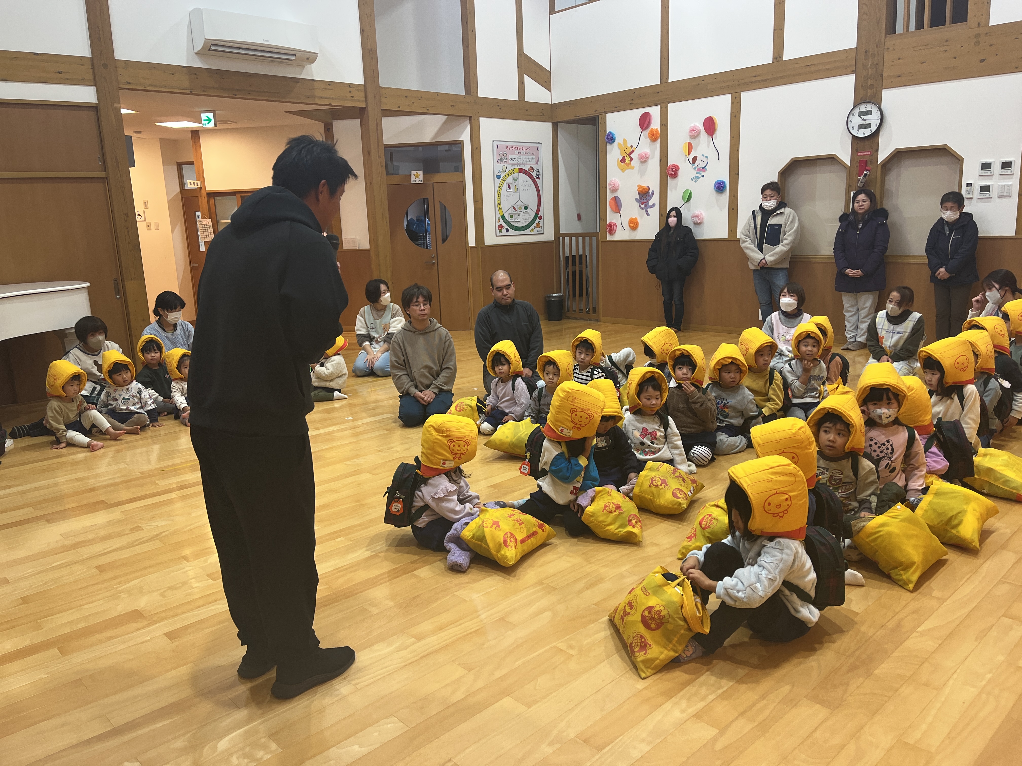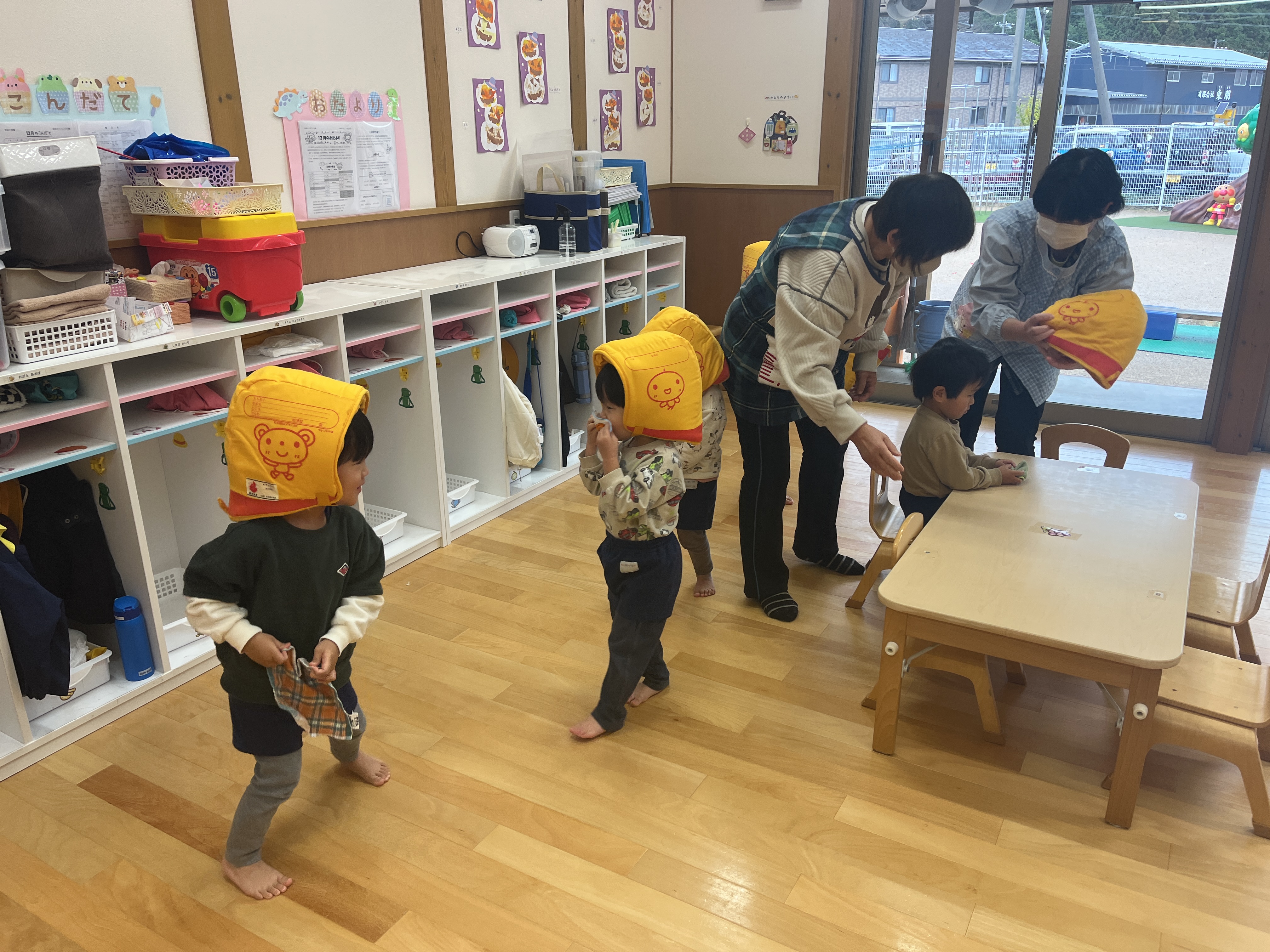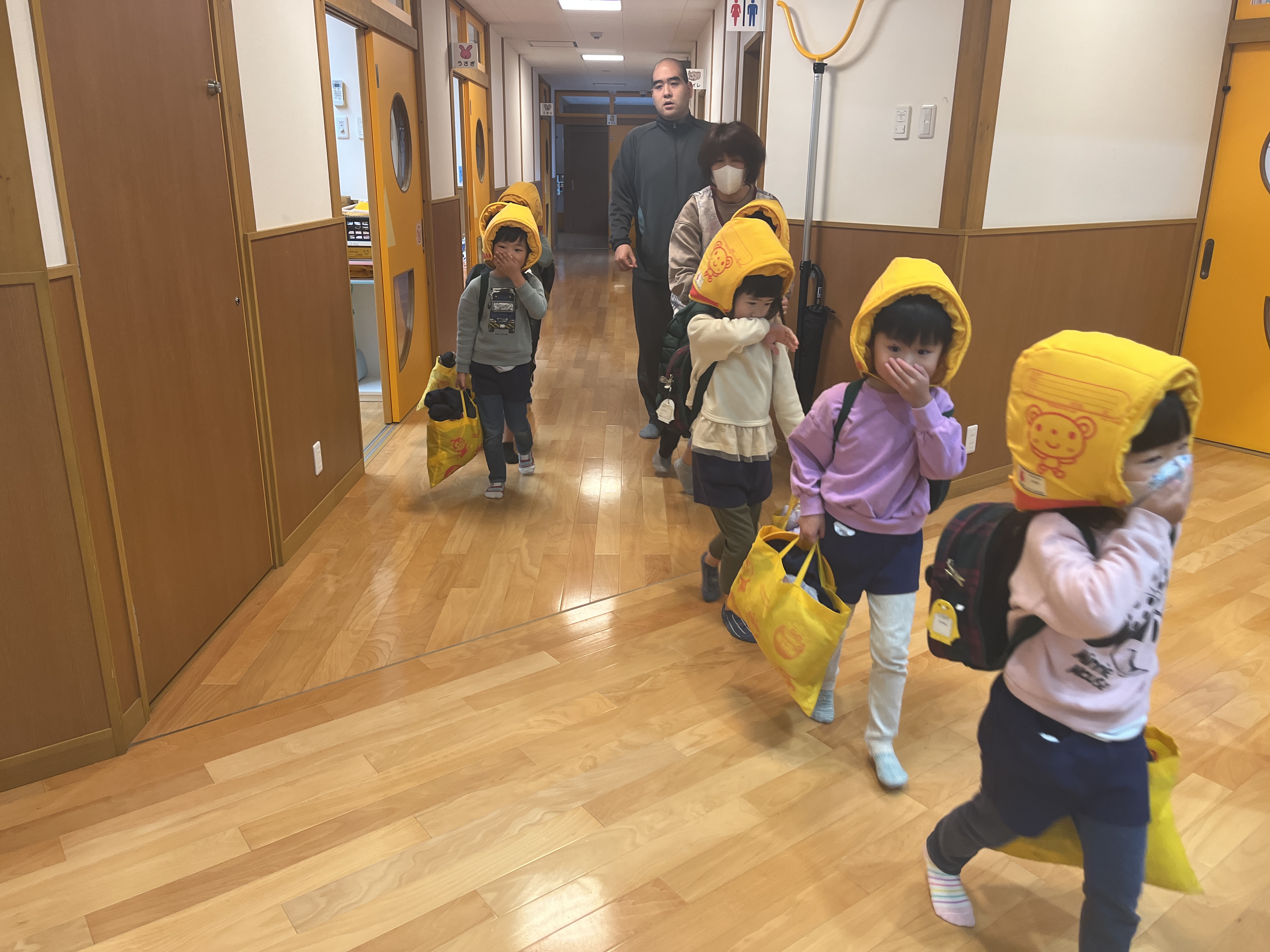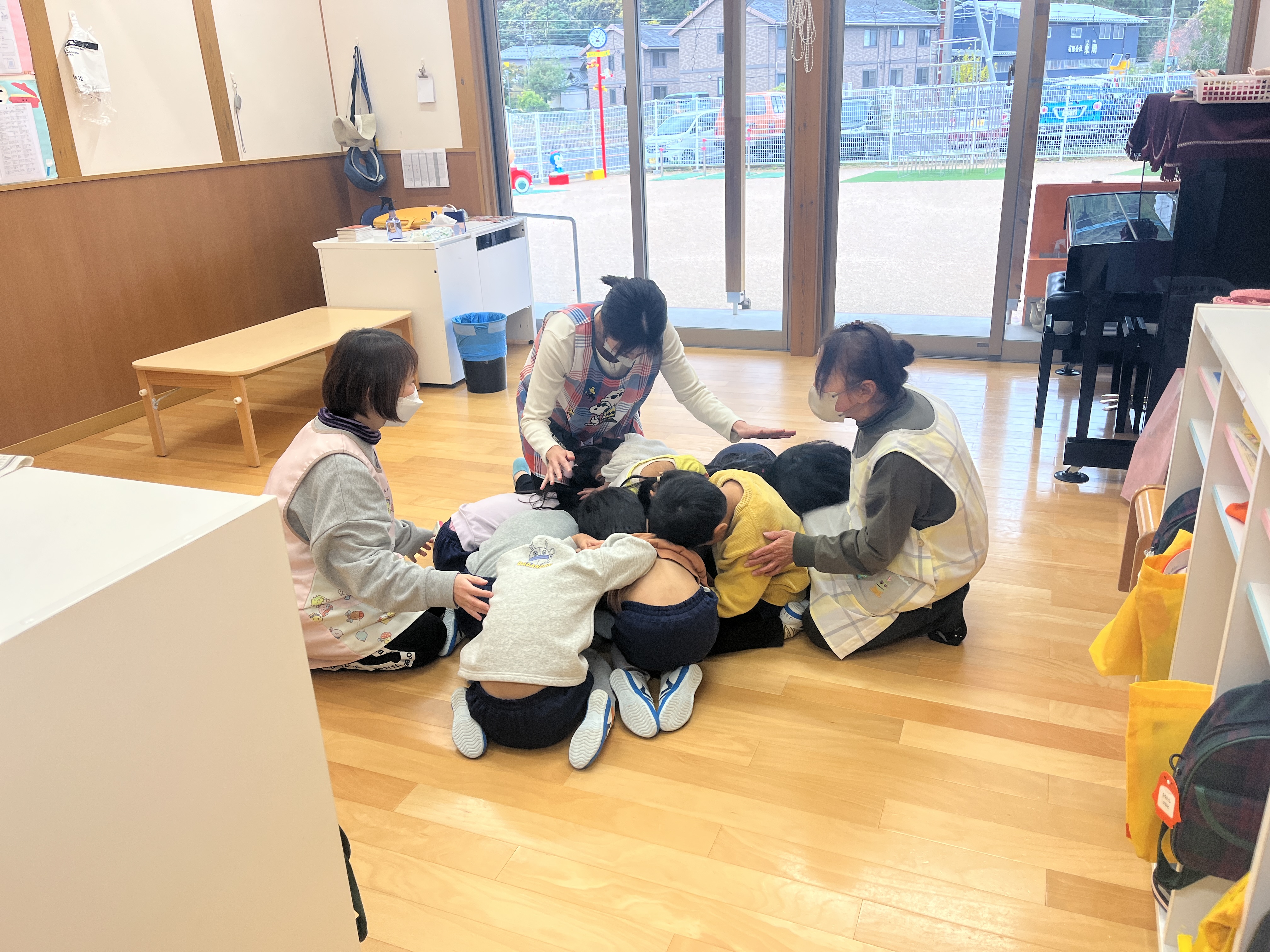 - 終了後は振り返りをしました。子どもたちはよく話を聞いて落ち着いて避難することができていました。