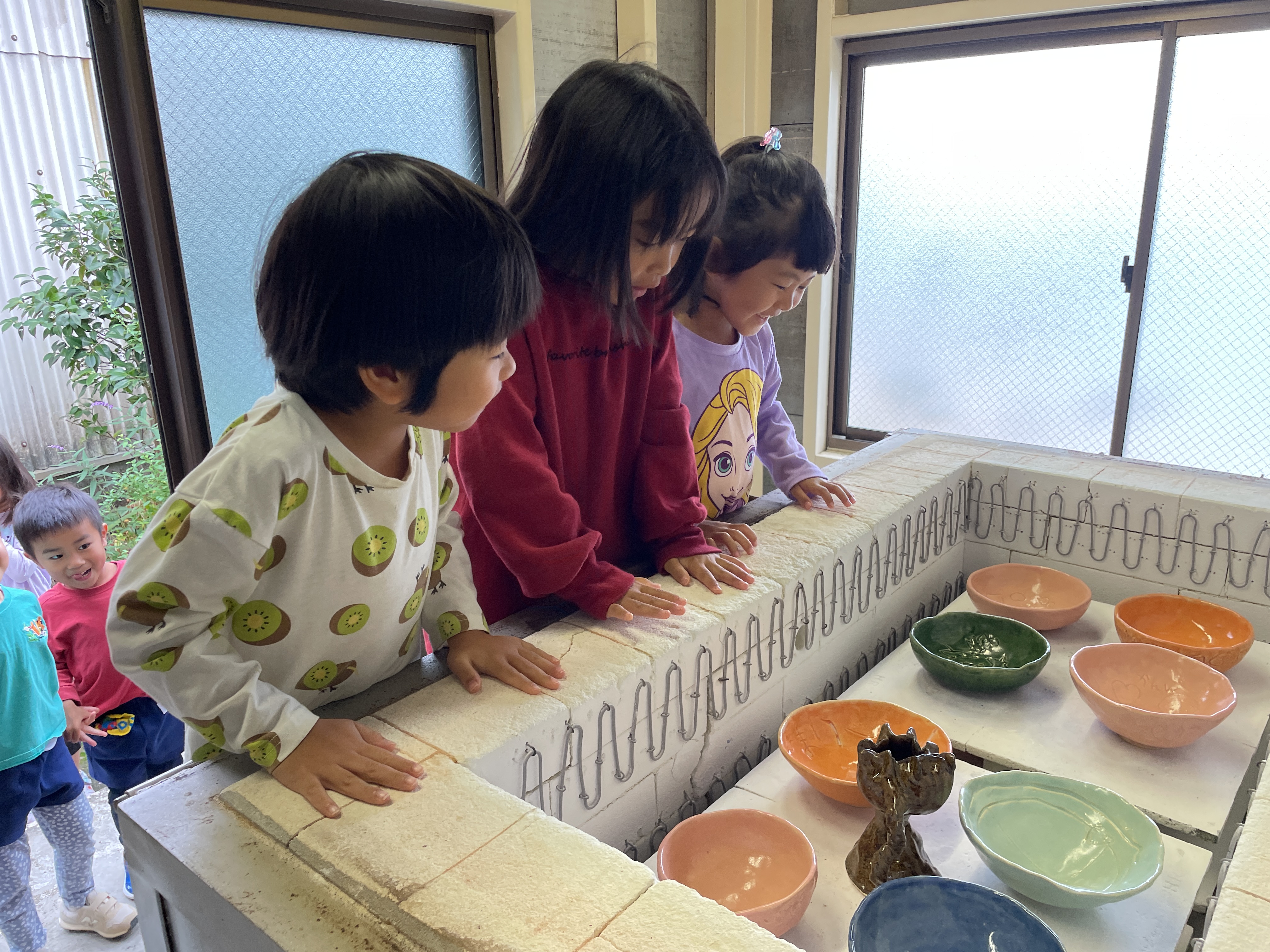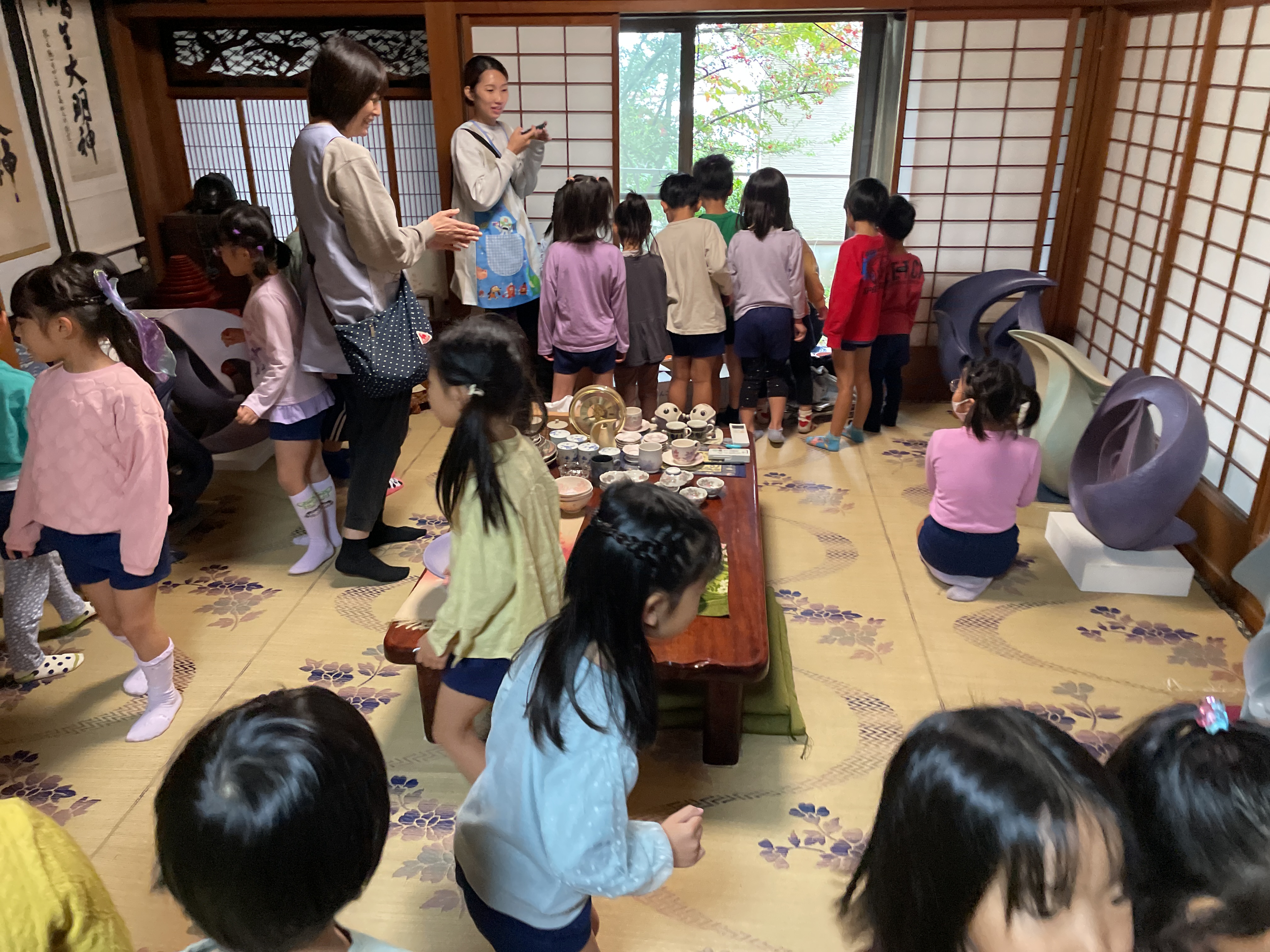 10月22日(水)に、きりん組が平こども園と合同で、舞鶴市成生にある陶芸家高井晴美先生のご自宅へ陶芸見学へ行きました。