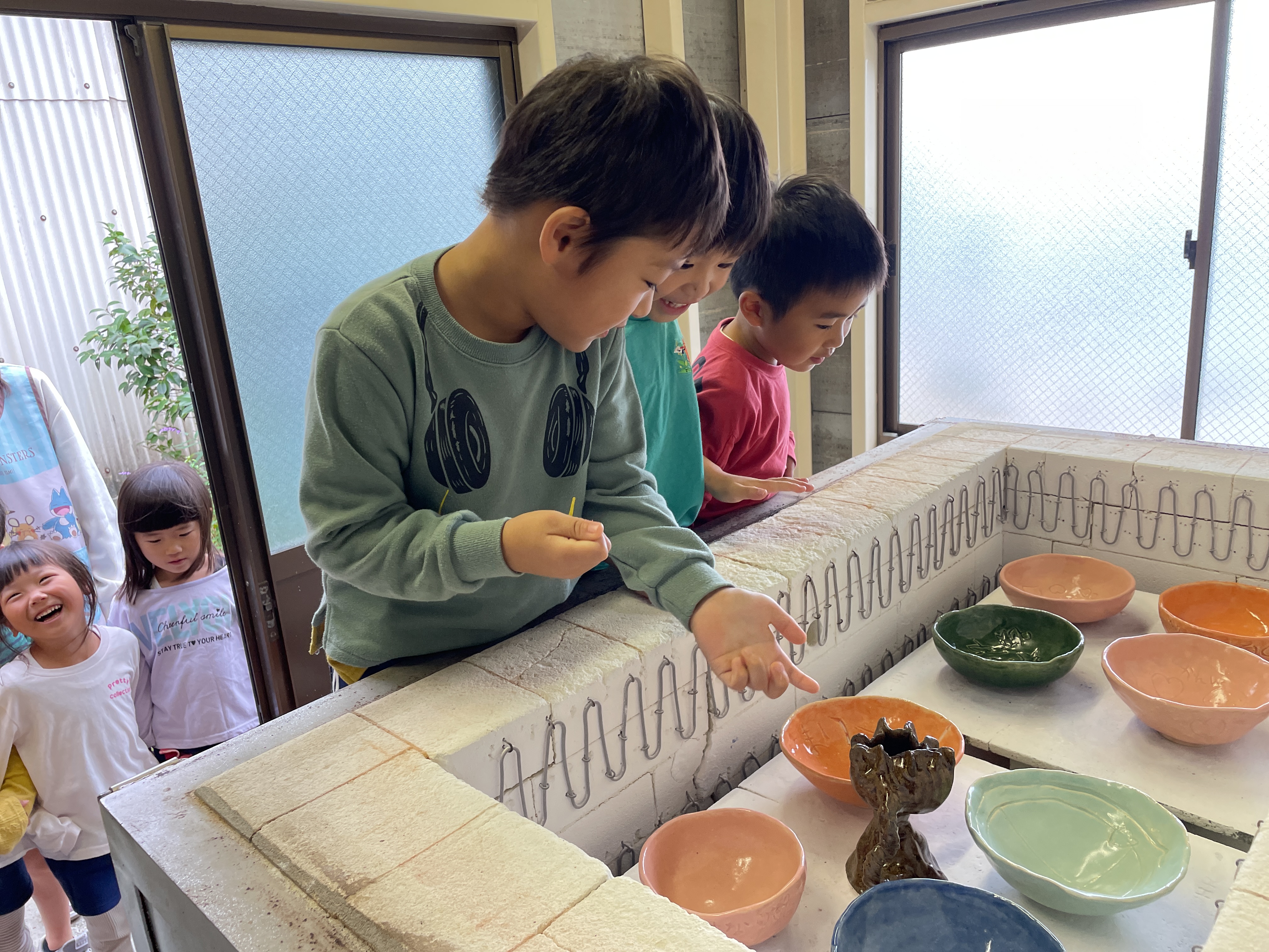 - 高井先生のご自宅に伺いました。子どもたちは器が焼きあがっているのを楽しみにしていました。