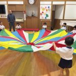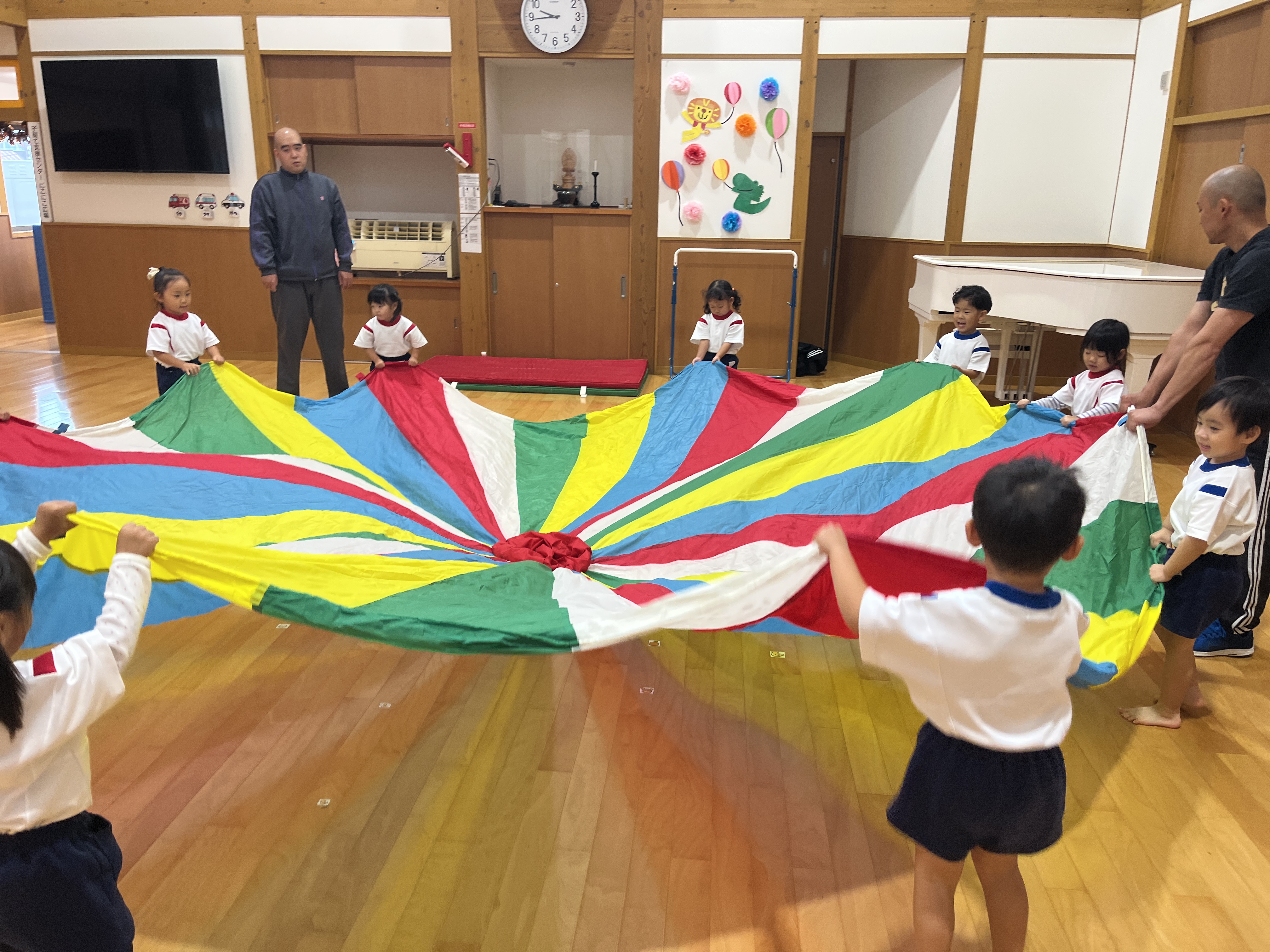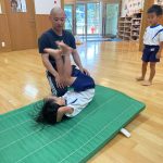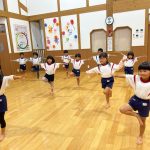 - 憧れのきりん組と同じ組体操をできてうれしそうでした。
