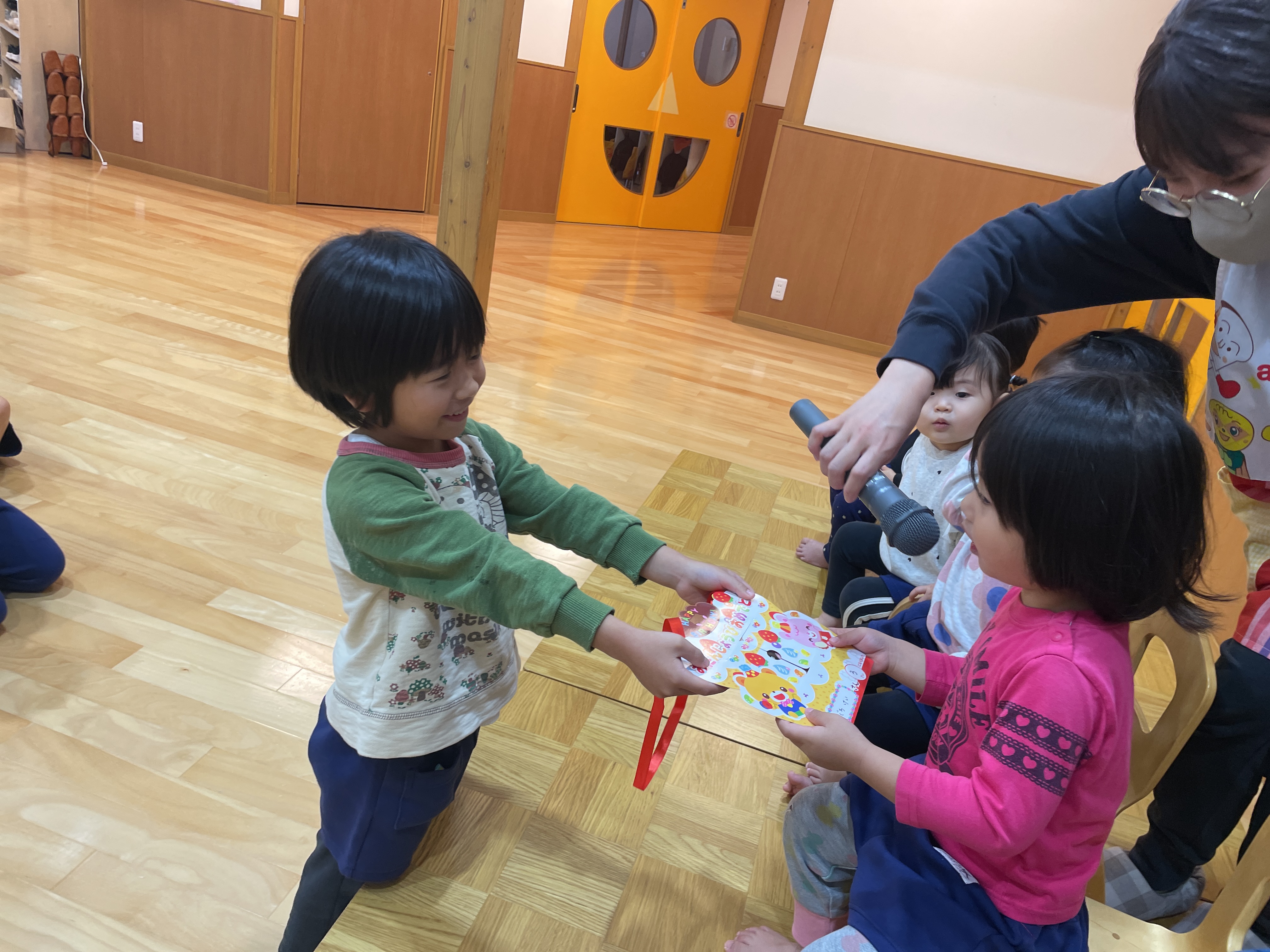 - 大好きなお友だちやきょうだいにカードをプレゼントしてもらい、嬉しそうでした。
