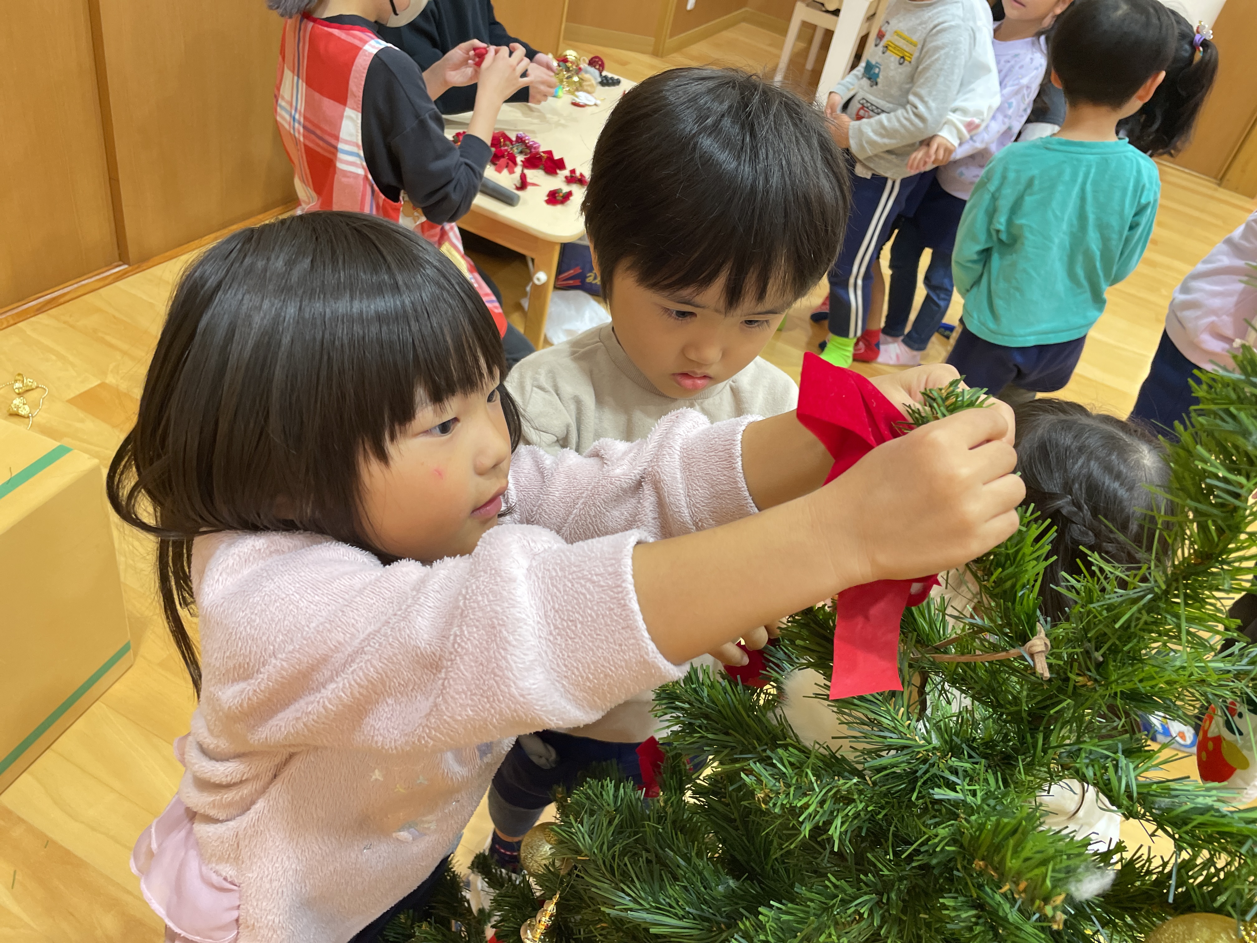- お誕生会の後はクリスマスツリーの飾りつけを行いました。
