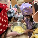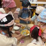 - みんなで協力して混ぜ合わせました。だんだん色が変わり、子どもたちは興味津々でした。