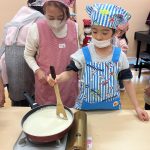 3月4日(水)に、ぱんだ組が、きりん組に向けてありがとうクッキングを行いました。