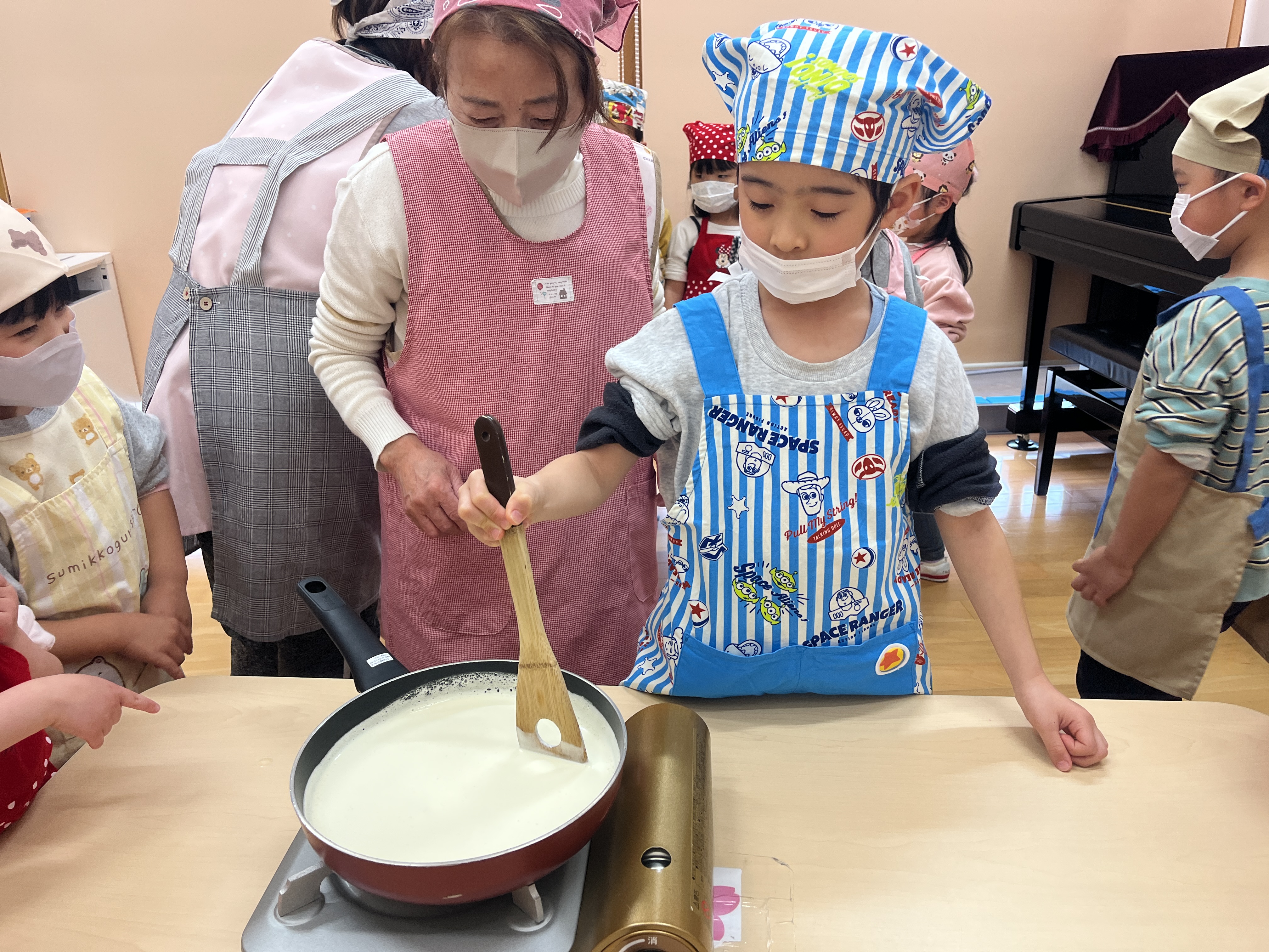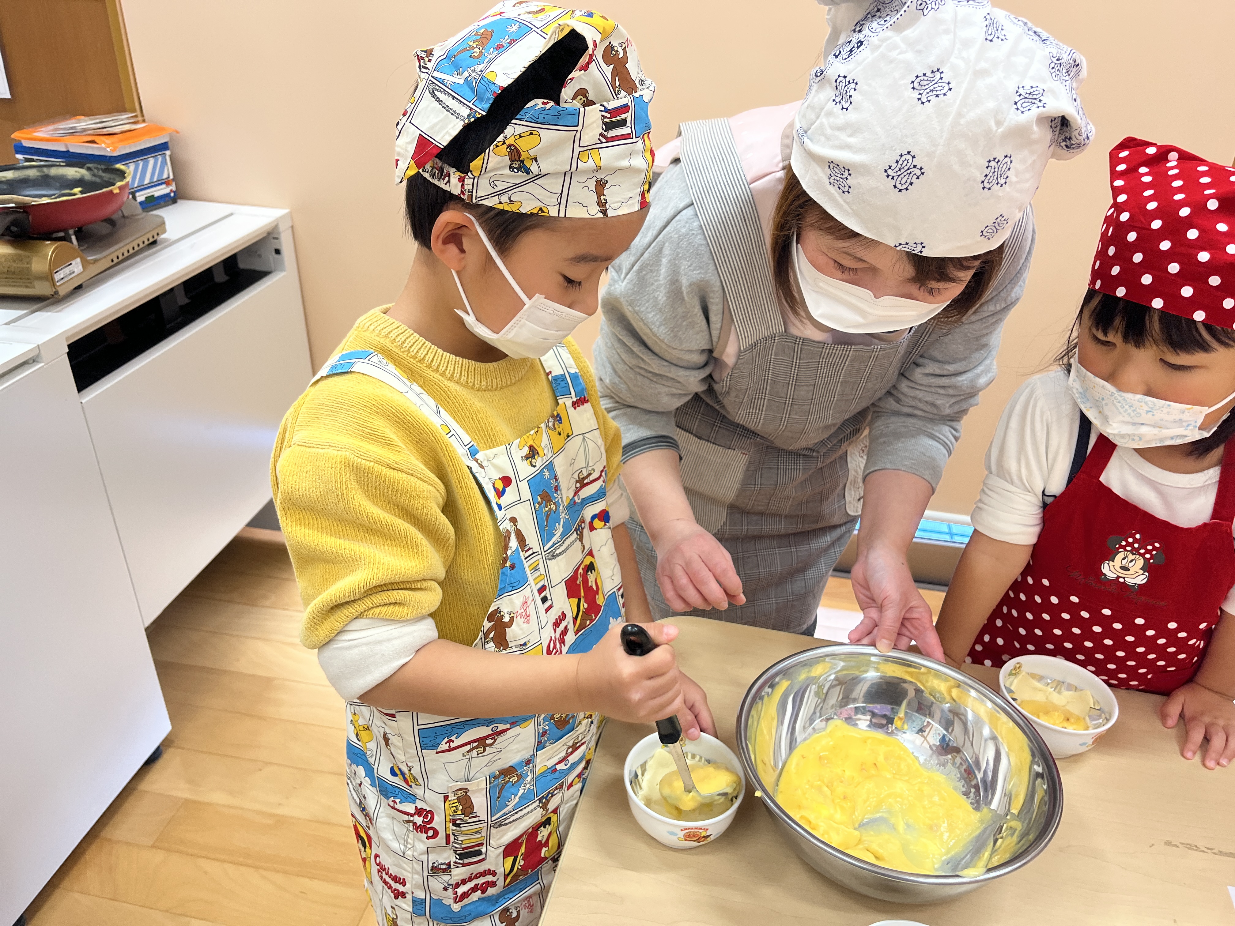 3月4日(水)に、ぱんだ組が、きりん組に向けてありがとうクッキングを行いました。
