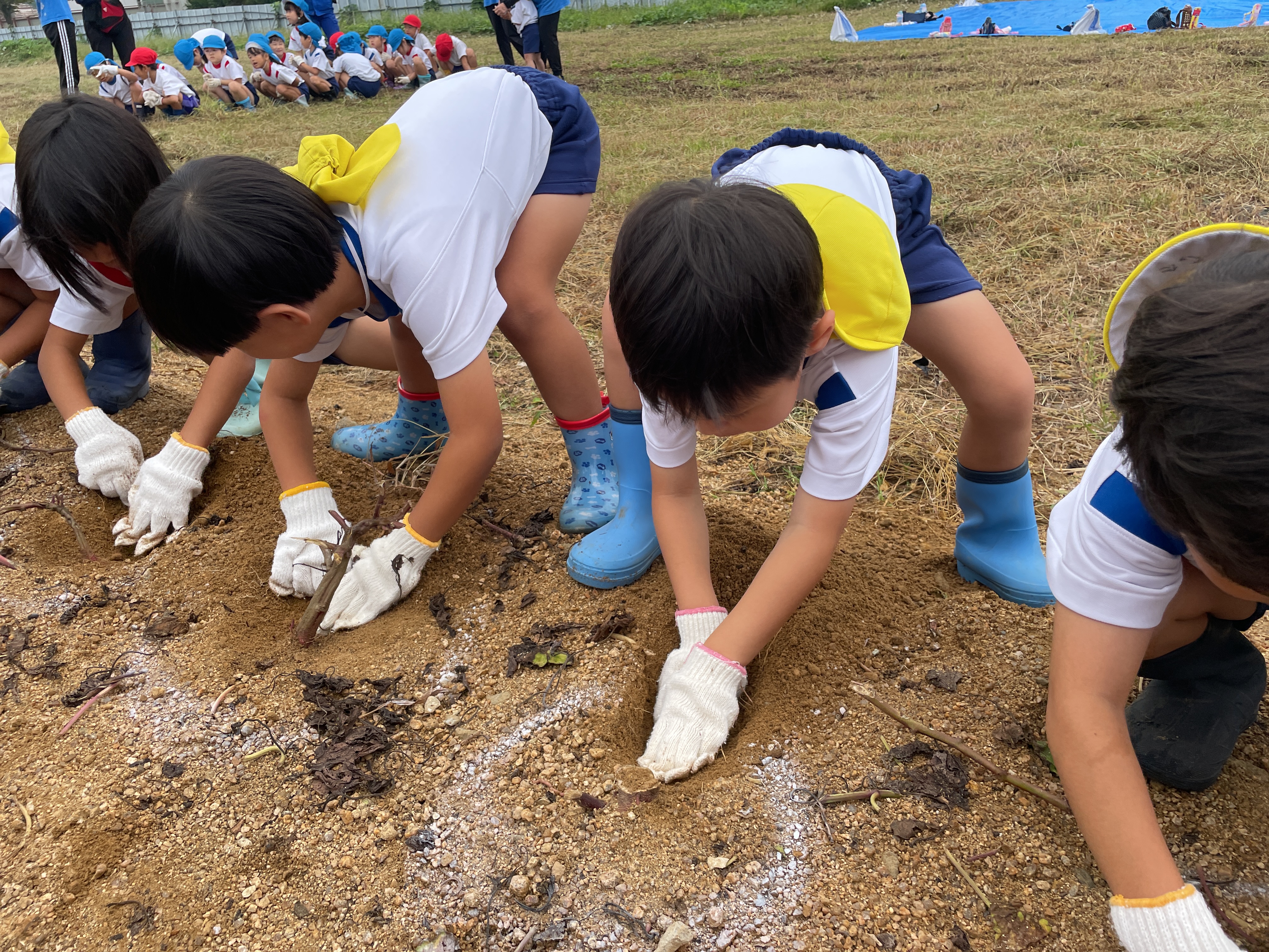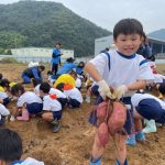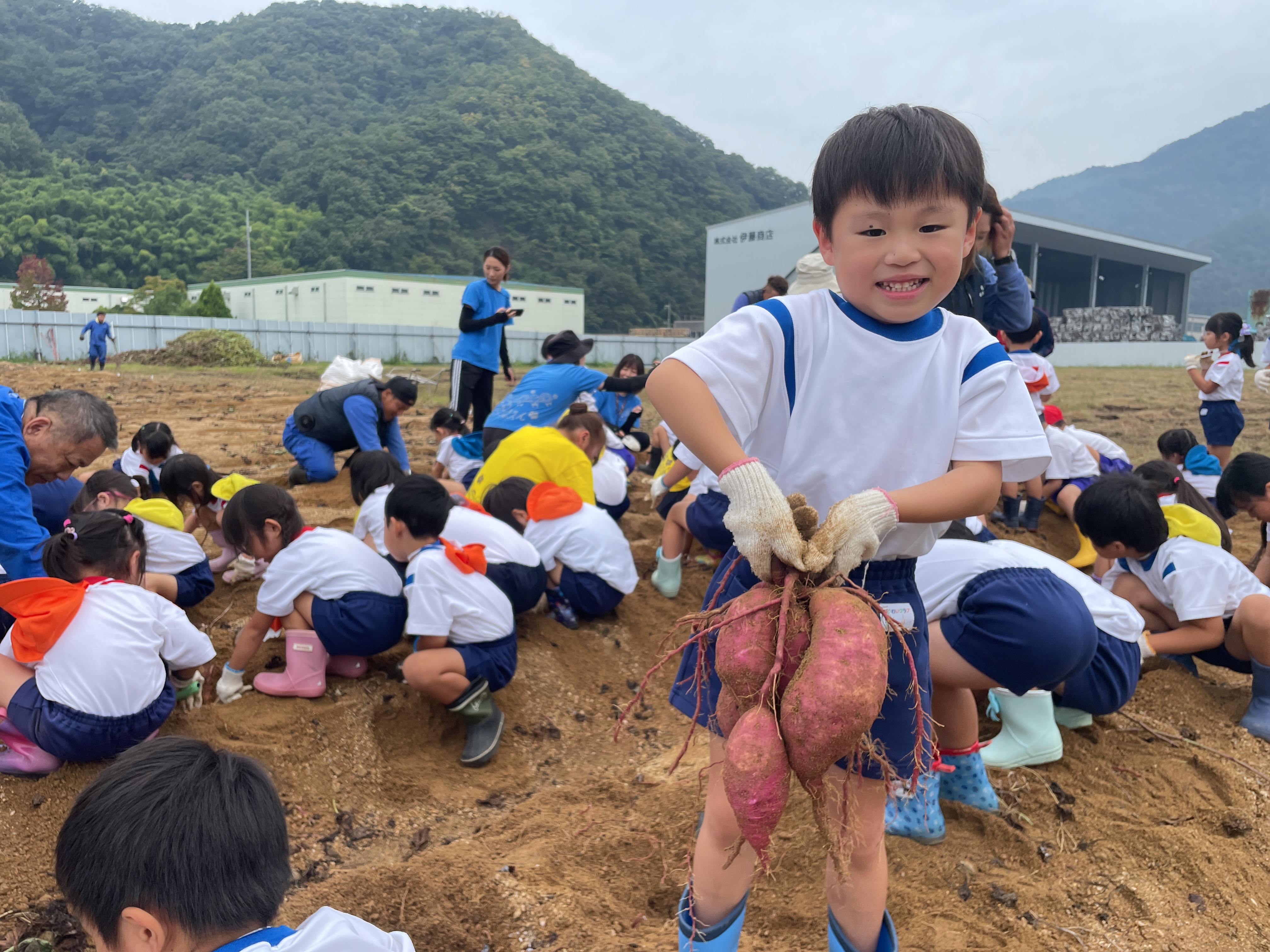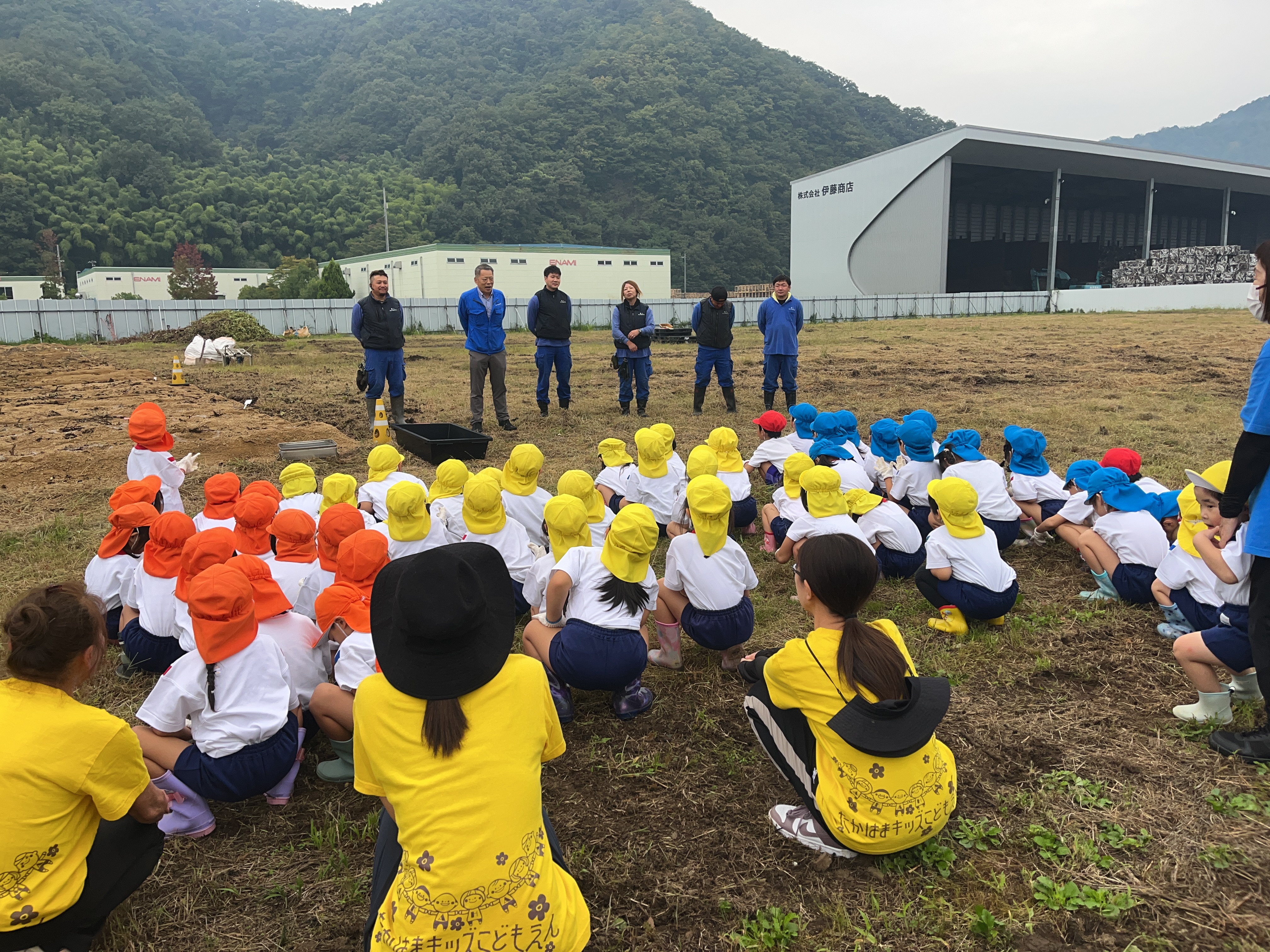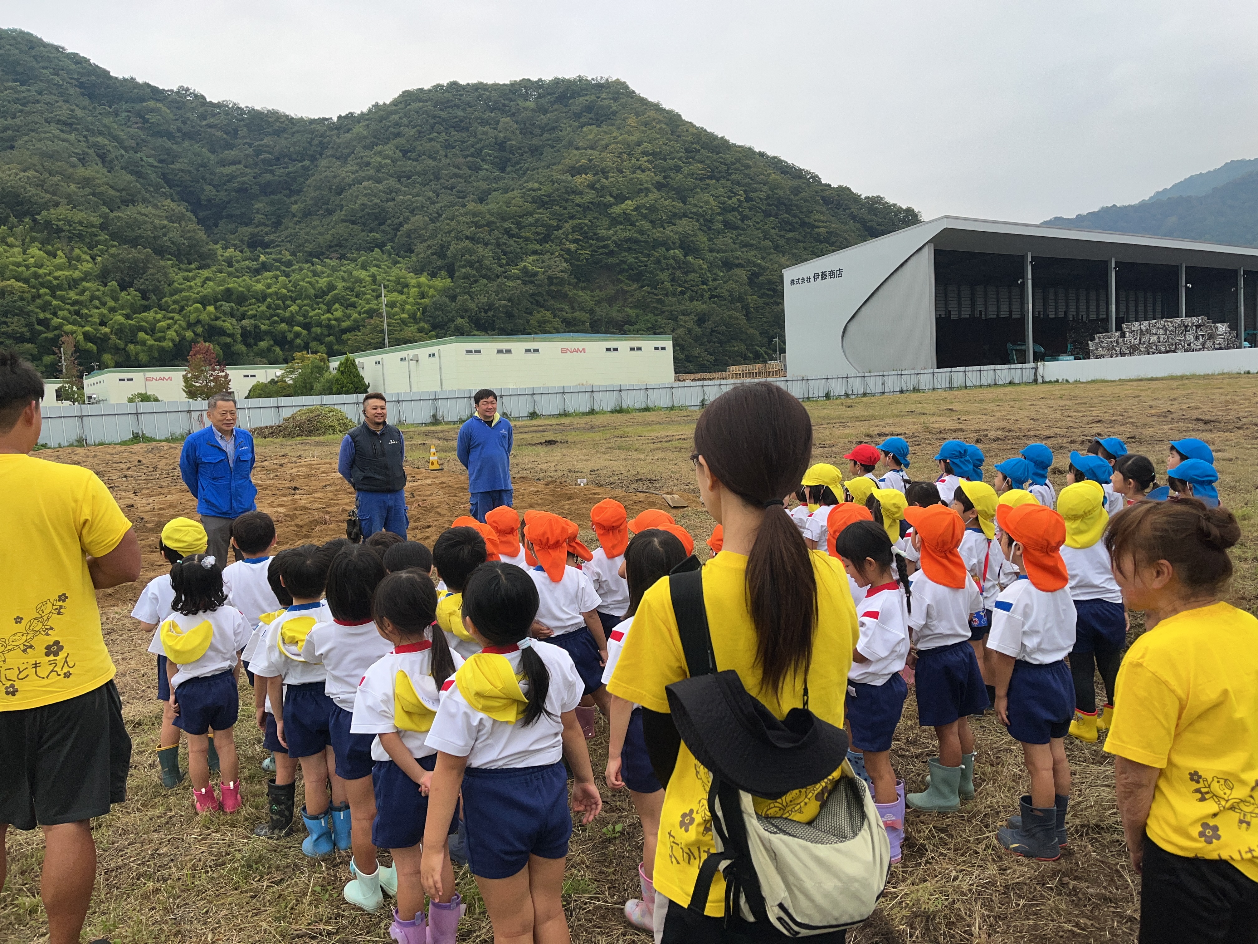10月3日(金)に、舞鶴市平にある伊藤商店様できりん・ぱんだ組が平こども園と合同でいもほりを行いました。