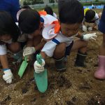 - ひとりずつ場所を決め、手を使って一生懸命掘りました。