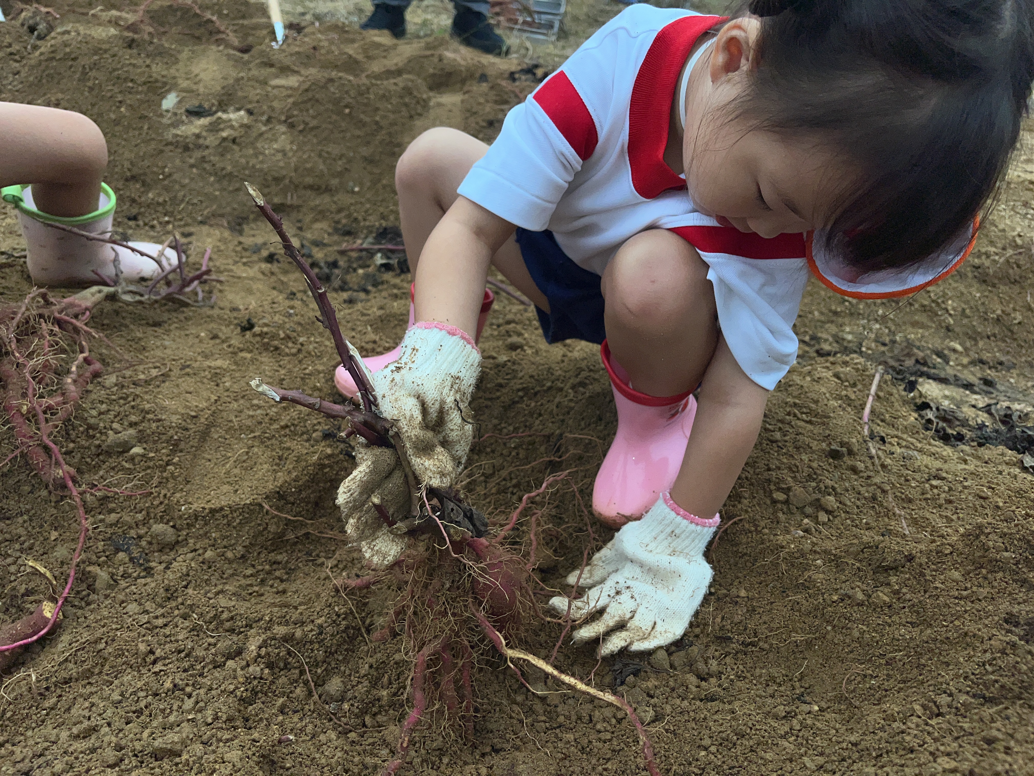 - お友だちとも協力して、小さなさつまいももたくさん収穫できました。