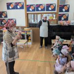 - 調理員からきな粉の材料について説明がありました。豆まきの豆を使うということもあり、興味を持って聞いていました。