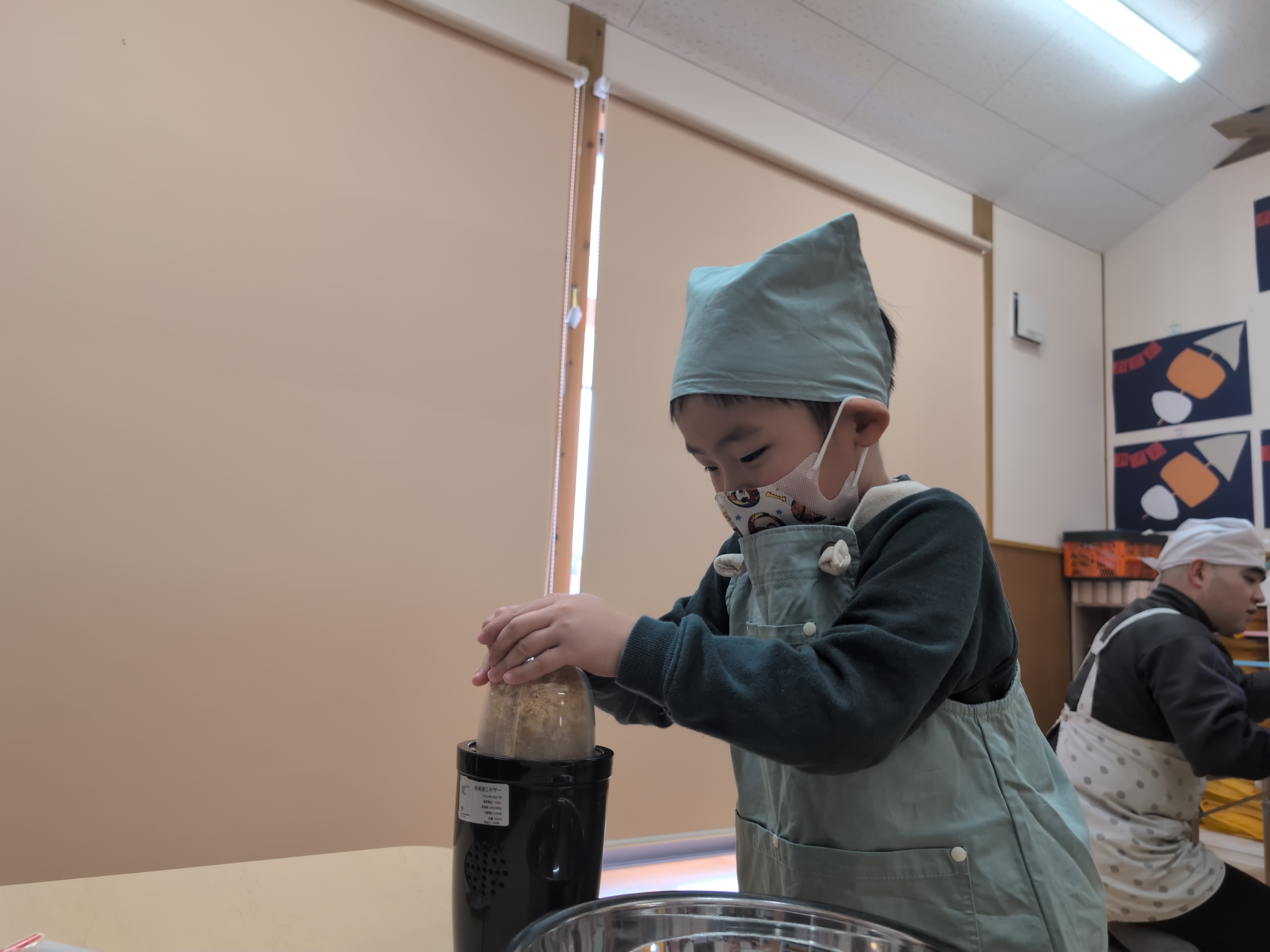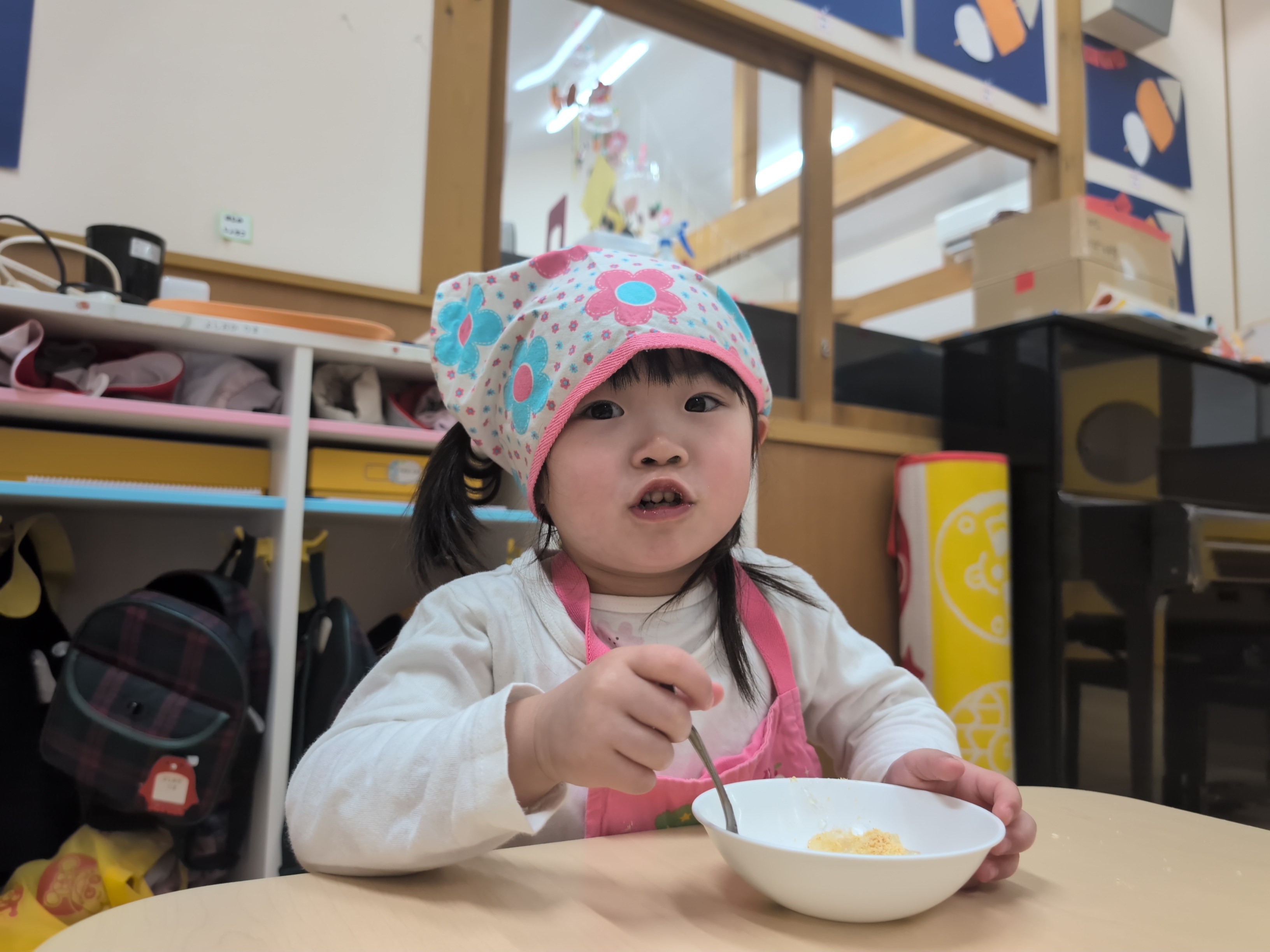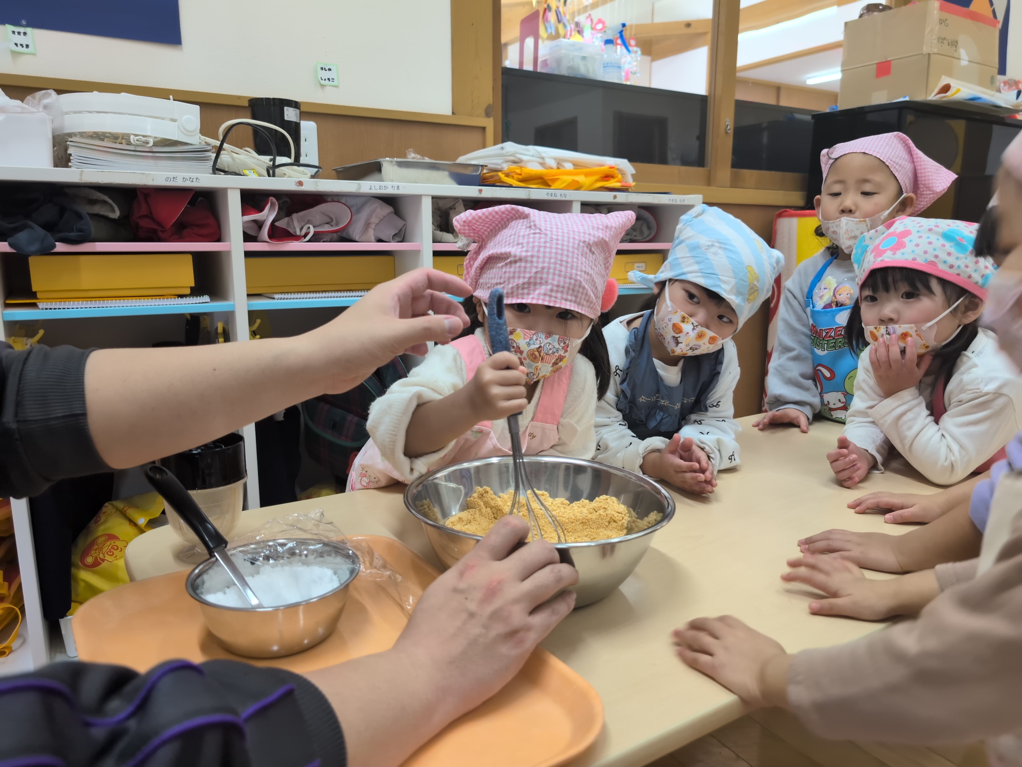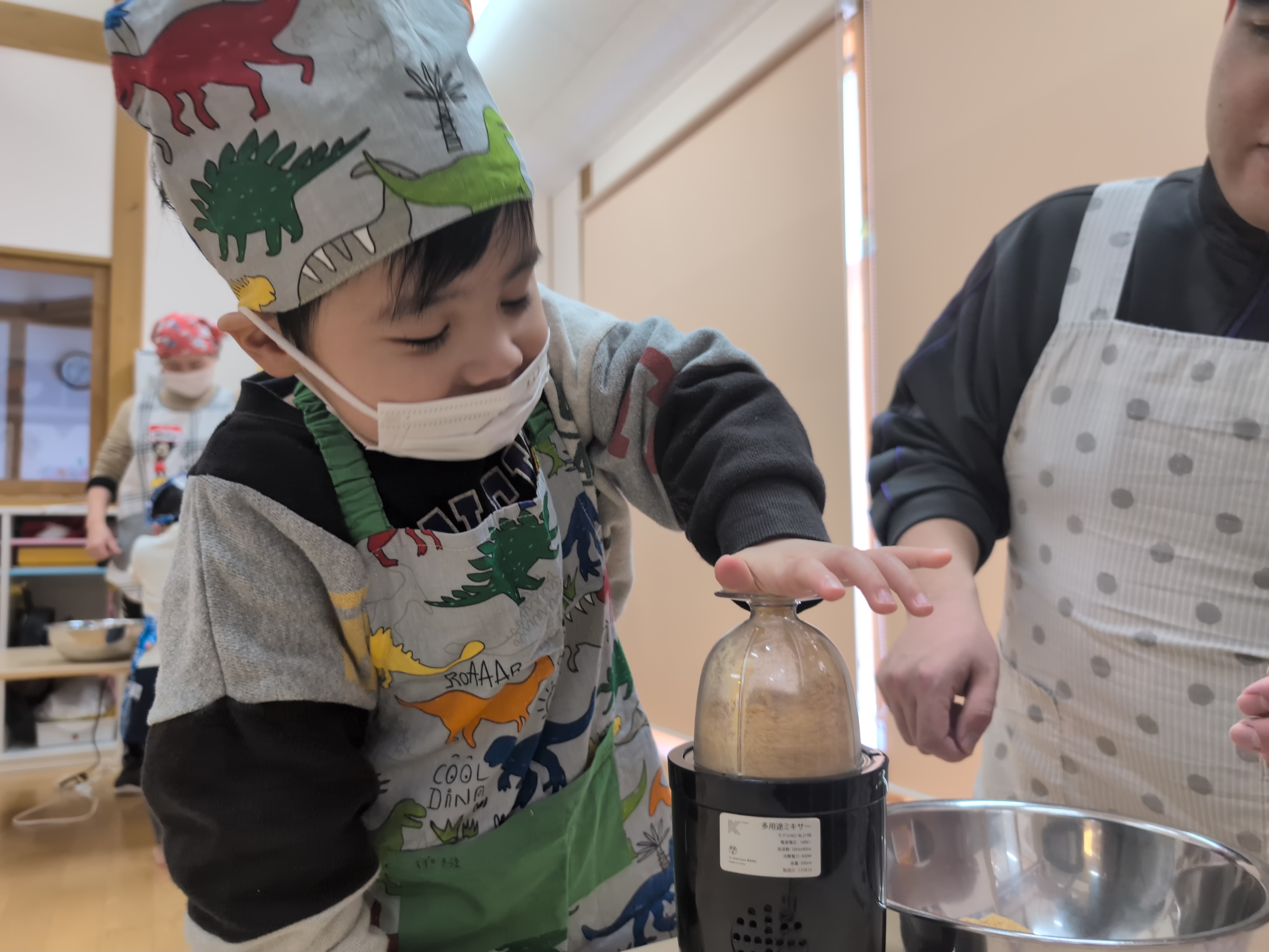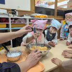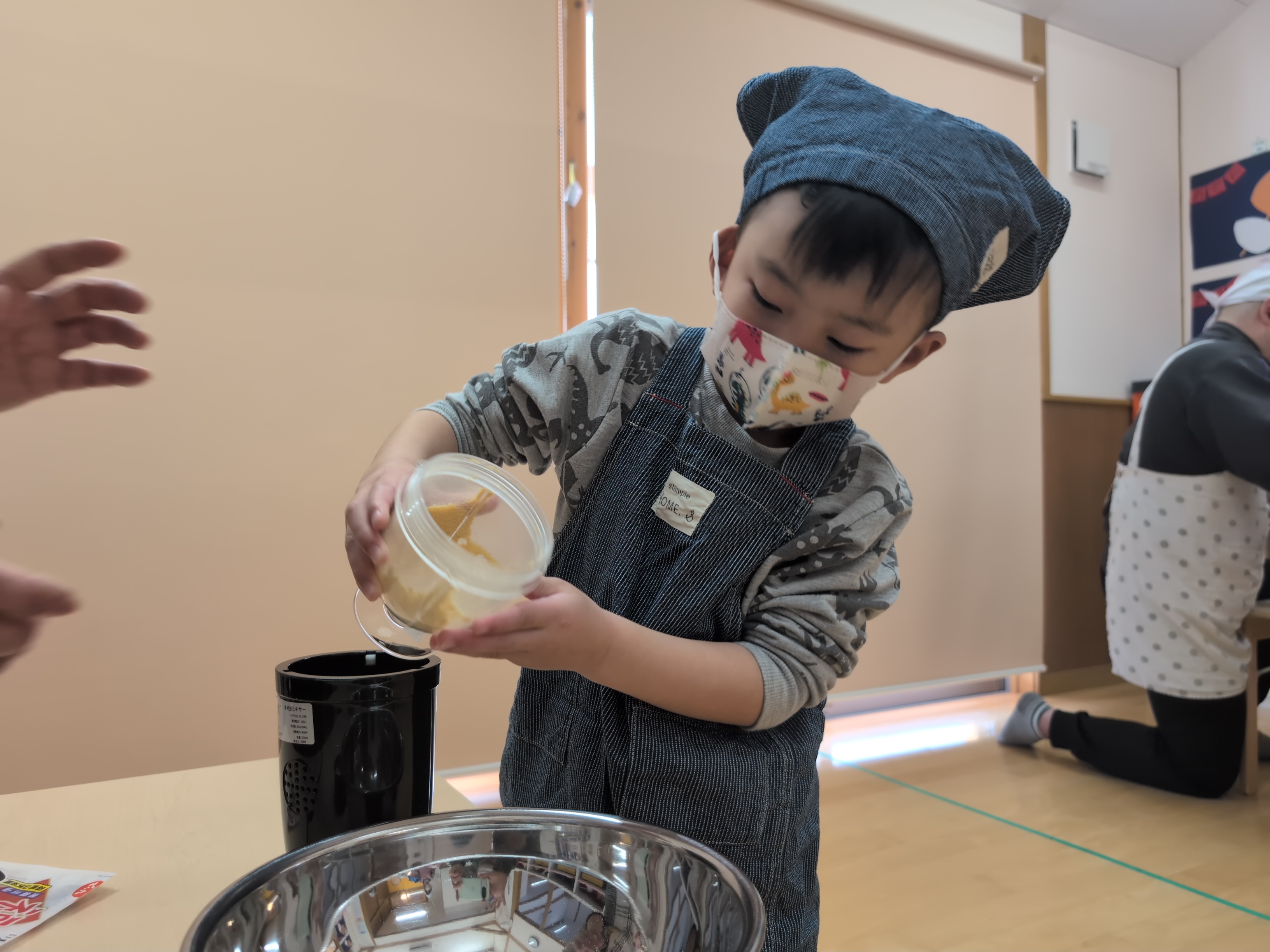 - 友だちと交代しながら混ぜました。「いいにおいする!」と嬉しそうでした。