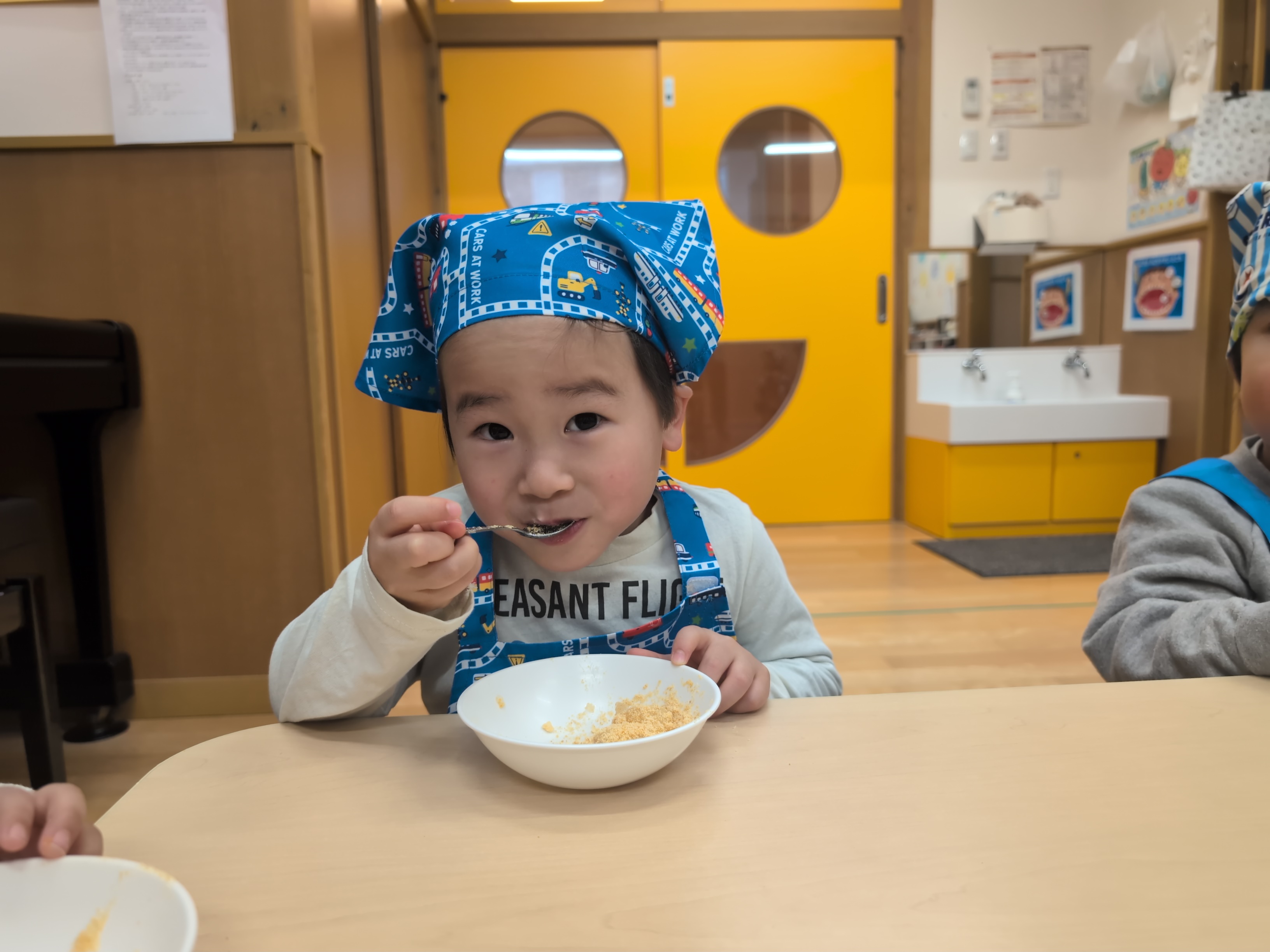 2月18日(水)に、こあら組がきな粉作りクッキングを行いました。