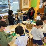 - 保育体験の様子です。廃材で制作をしたり秘密基地を作ったりしました。