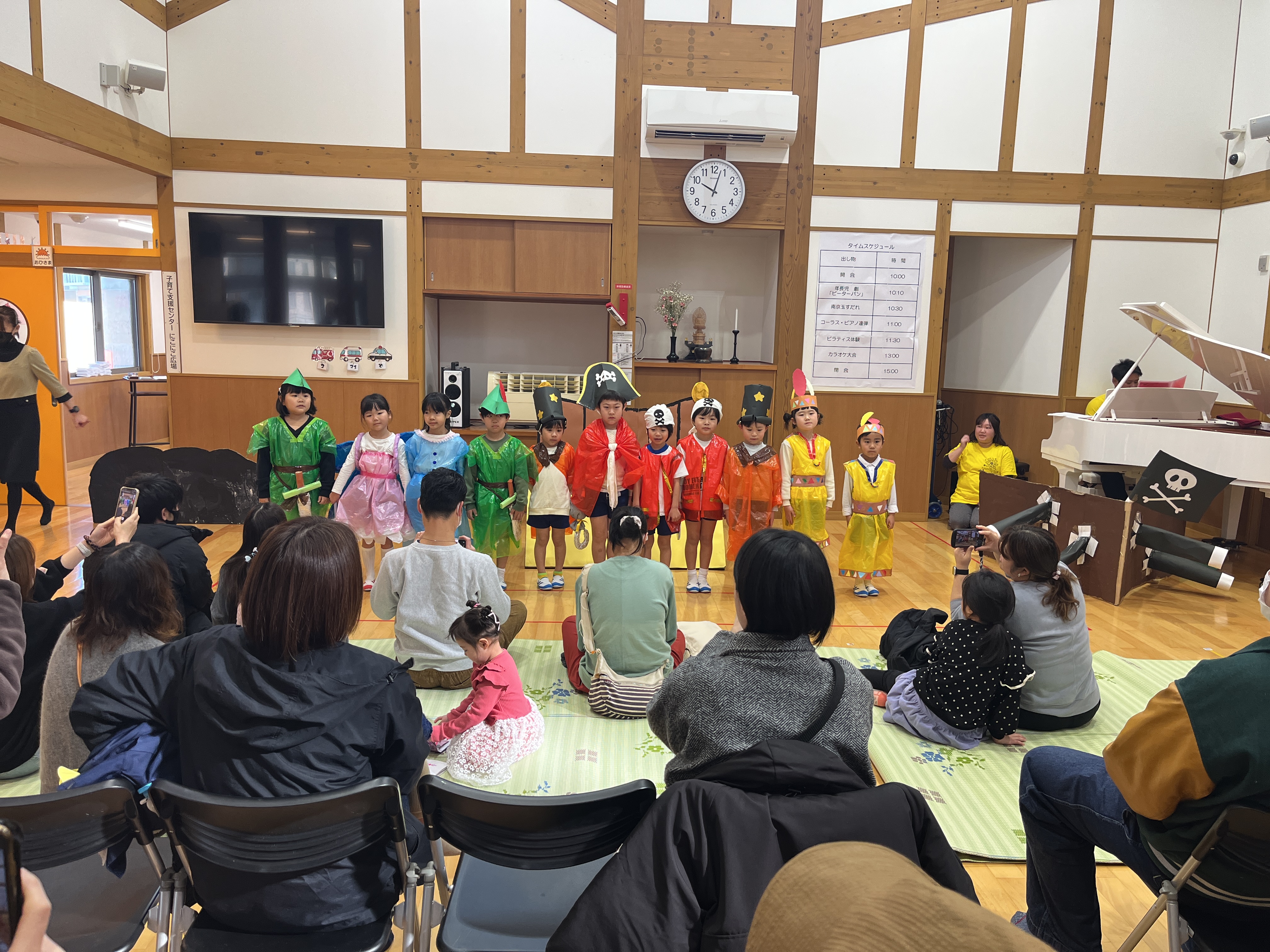 - ホールでの発表の様子です。きりん組は劇「ピーターパン」を発表しました。