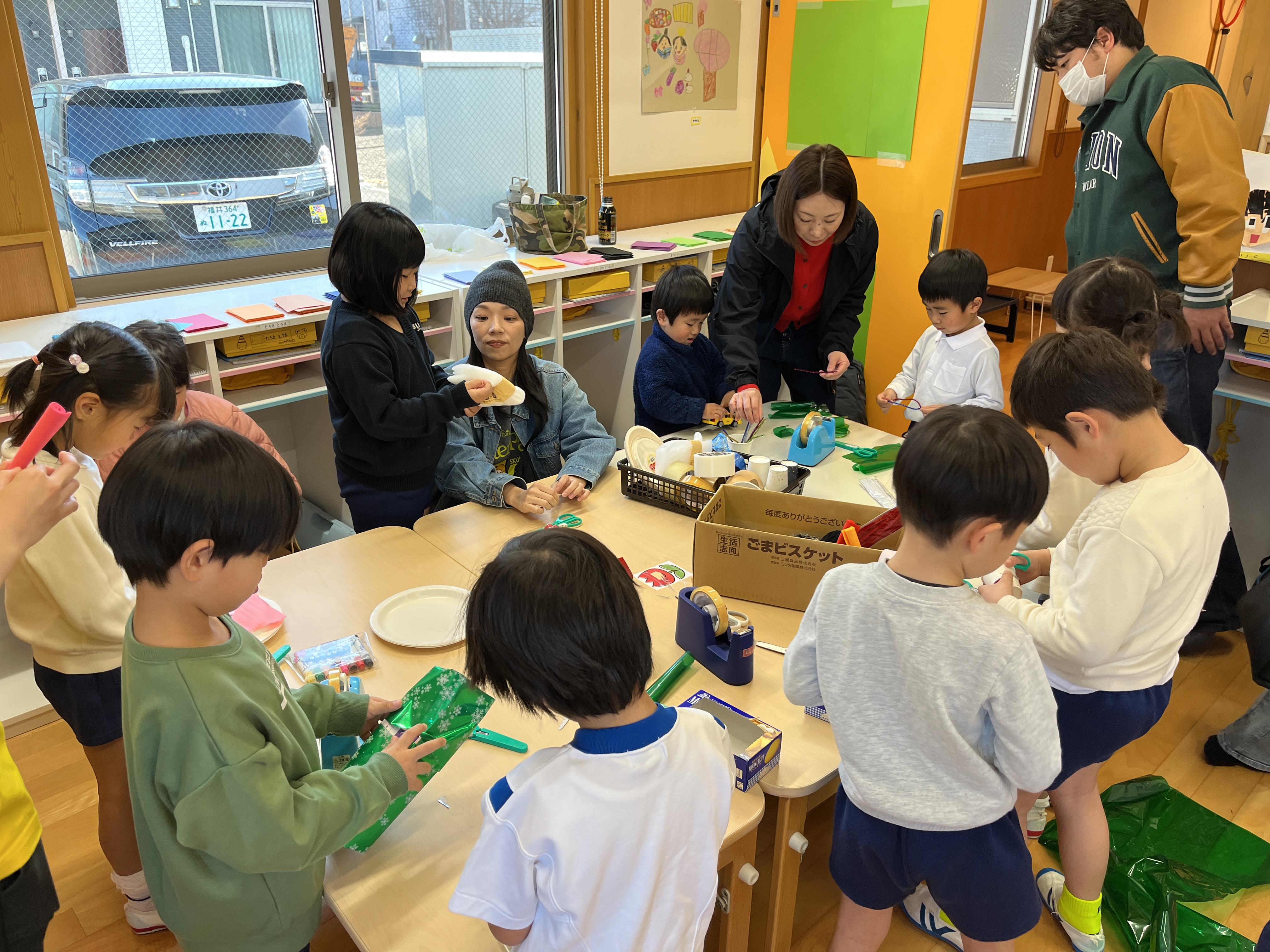 - 保育体験の様子です。廃材で制作をしたり秘密基地を作ったりしました。