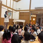 - 最後に紙芝居を見ました。知らない人がいてもついていかないことや、特徴を覚えて大人に伝えることなど、子どもたちは改めて学ぶことができていました。