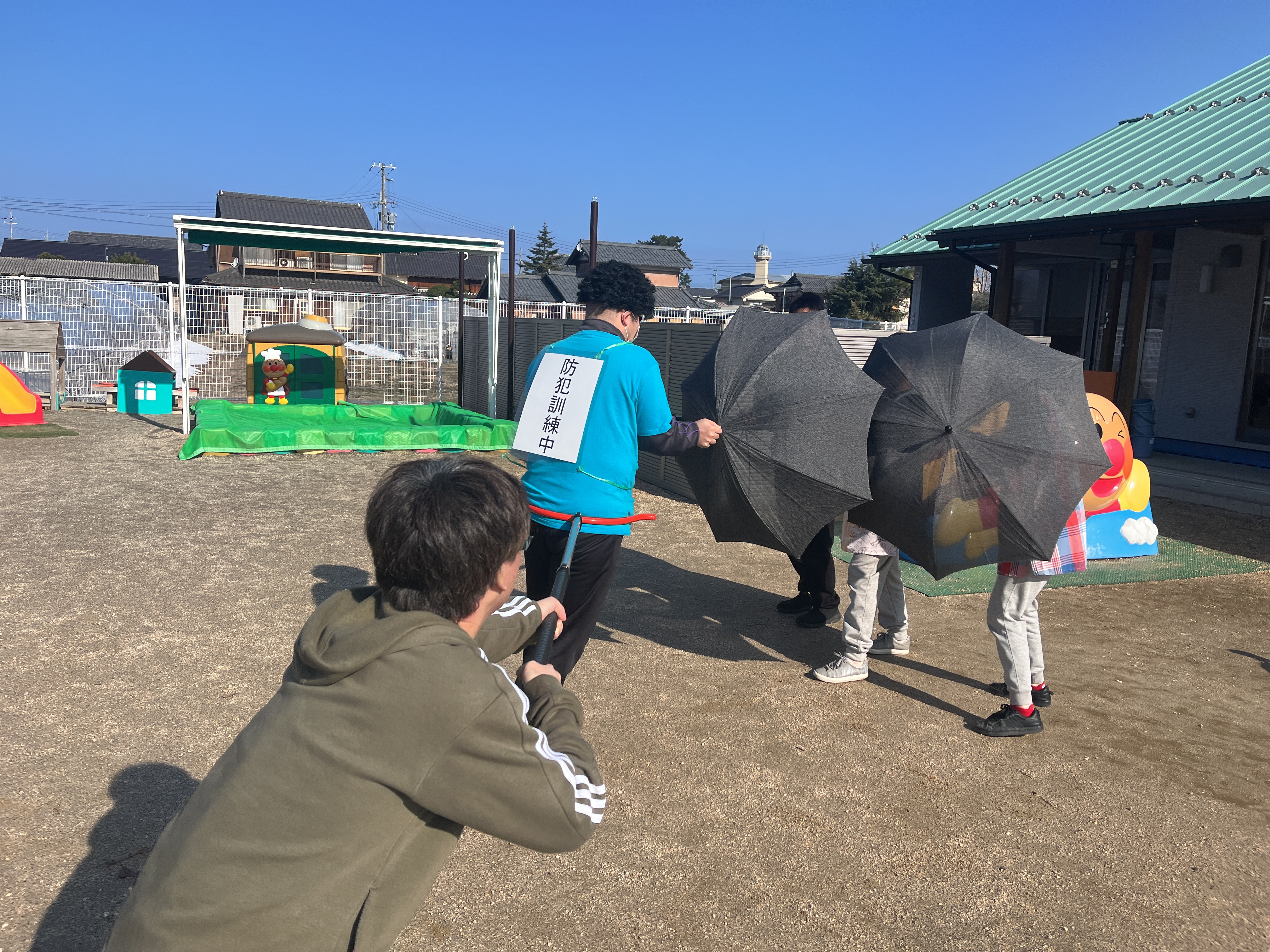- 職員がさすまたで対応をしました。
