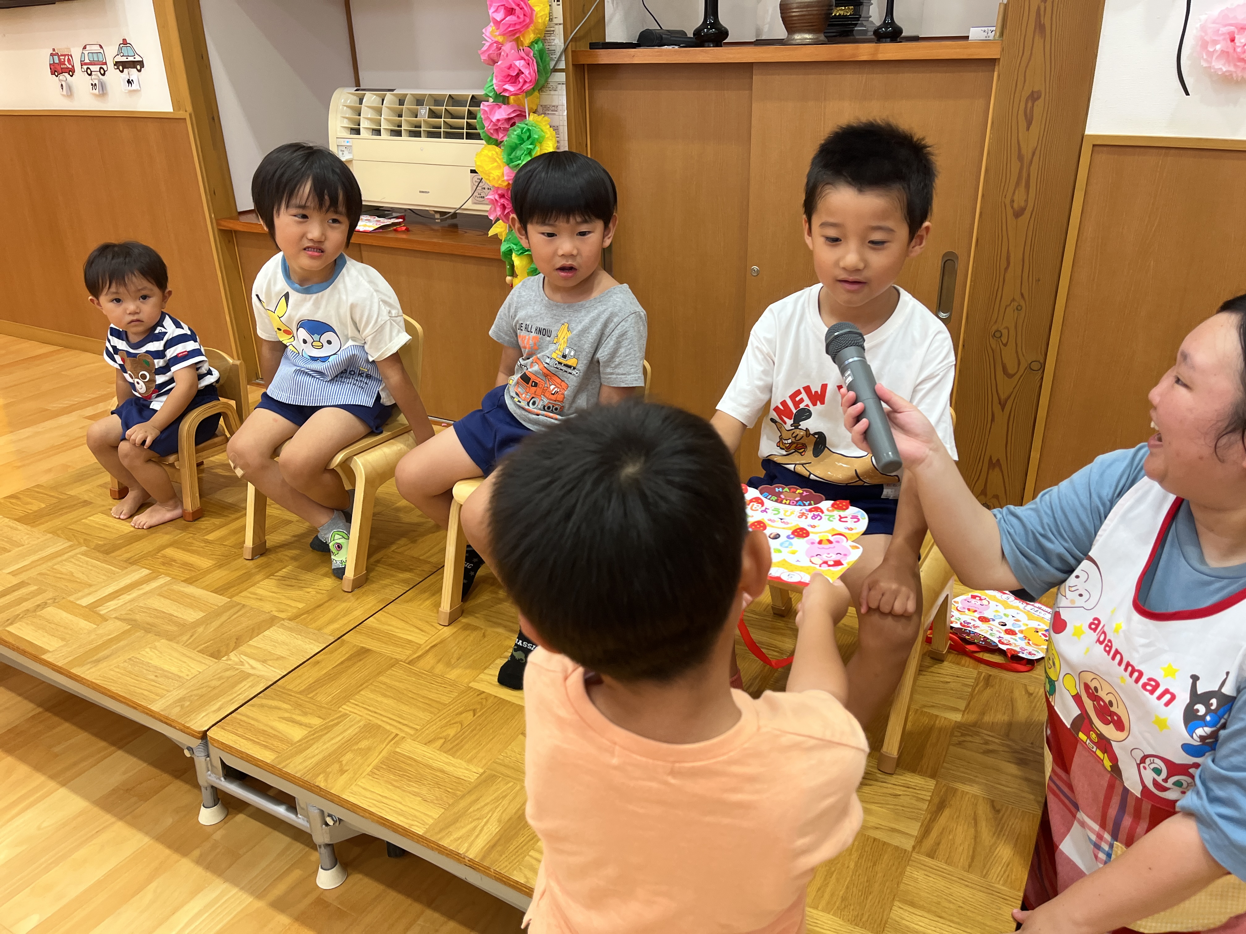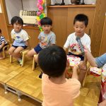 - みんなからは、「たんたんたんじょうび」の歌を歌い、お祝いしました。