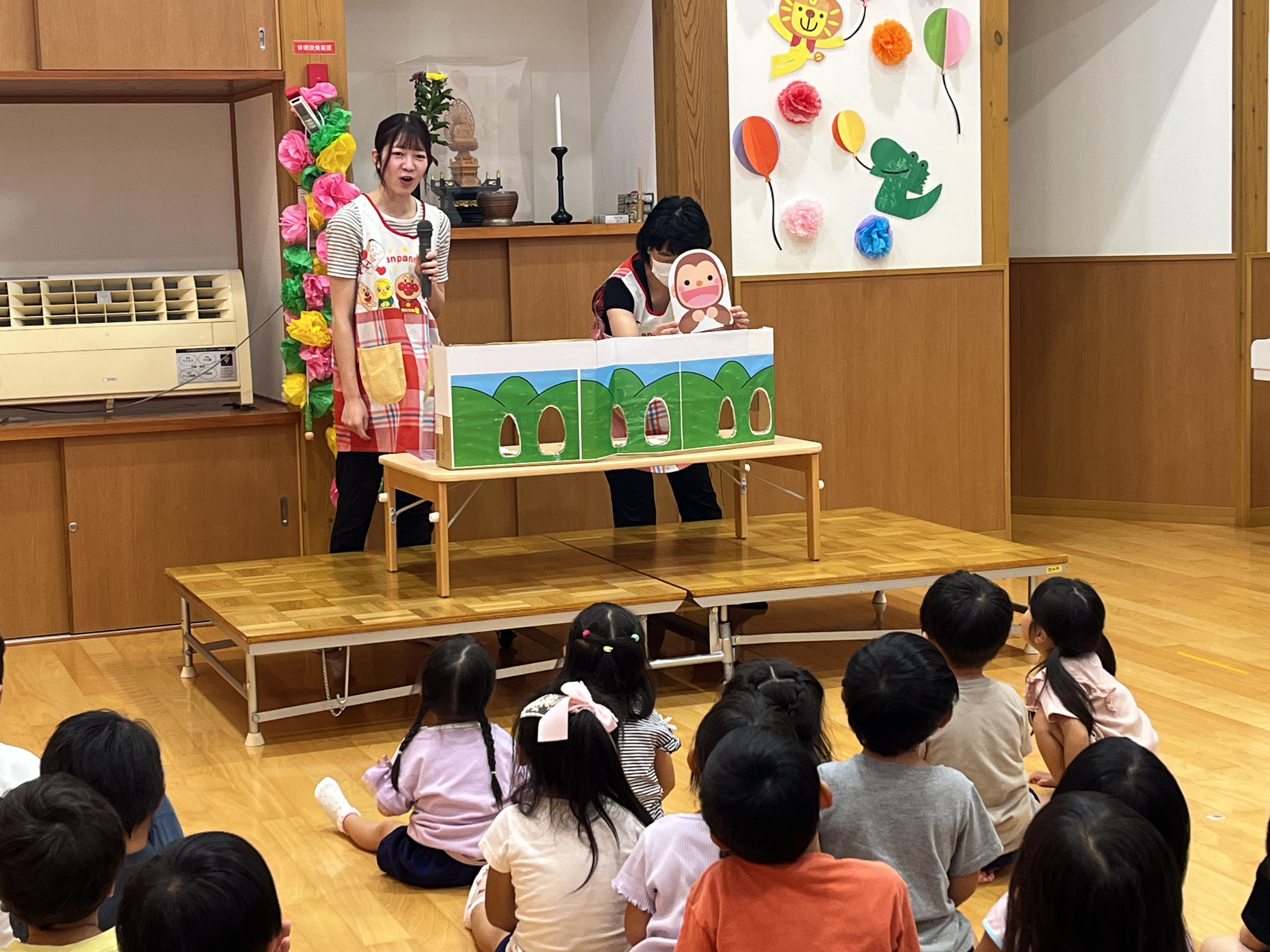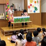 - 職員からの出し物の様子です。木の実が隙間から見えると、子どもたちは大喜びでなんの木の実か答えていました。