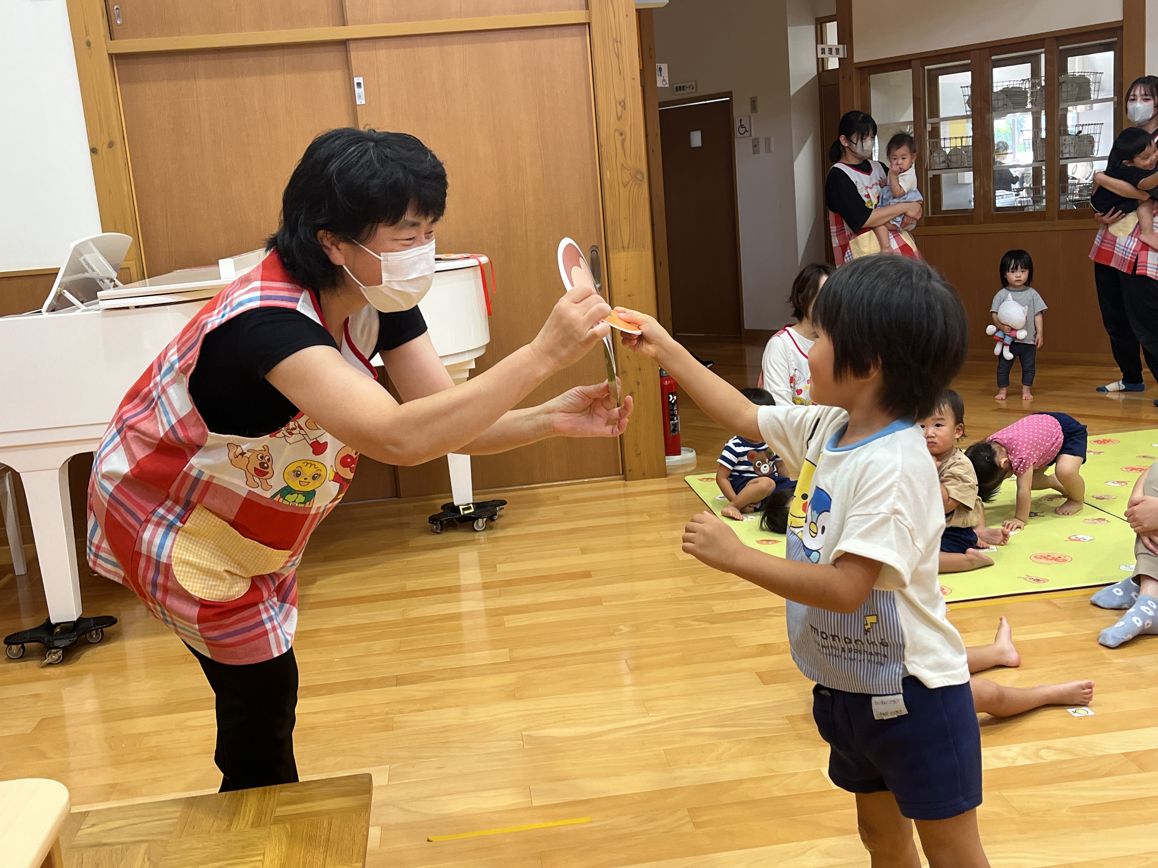 - 大好きなお友だちからカードをプレゼントしてもらい、「ありがとう」とお礼が言えました。