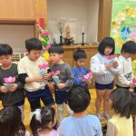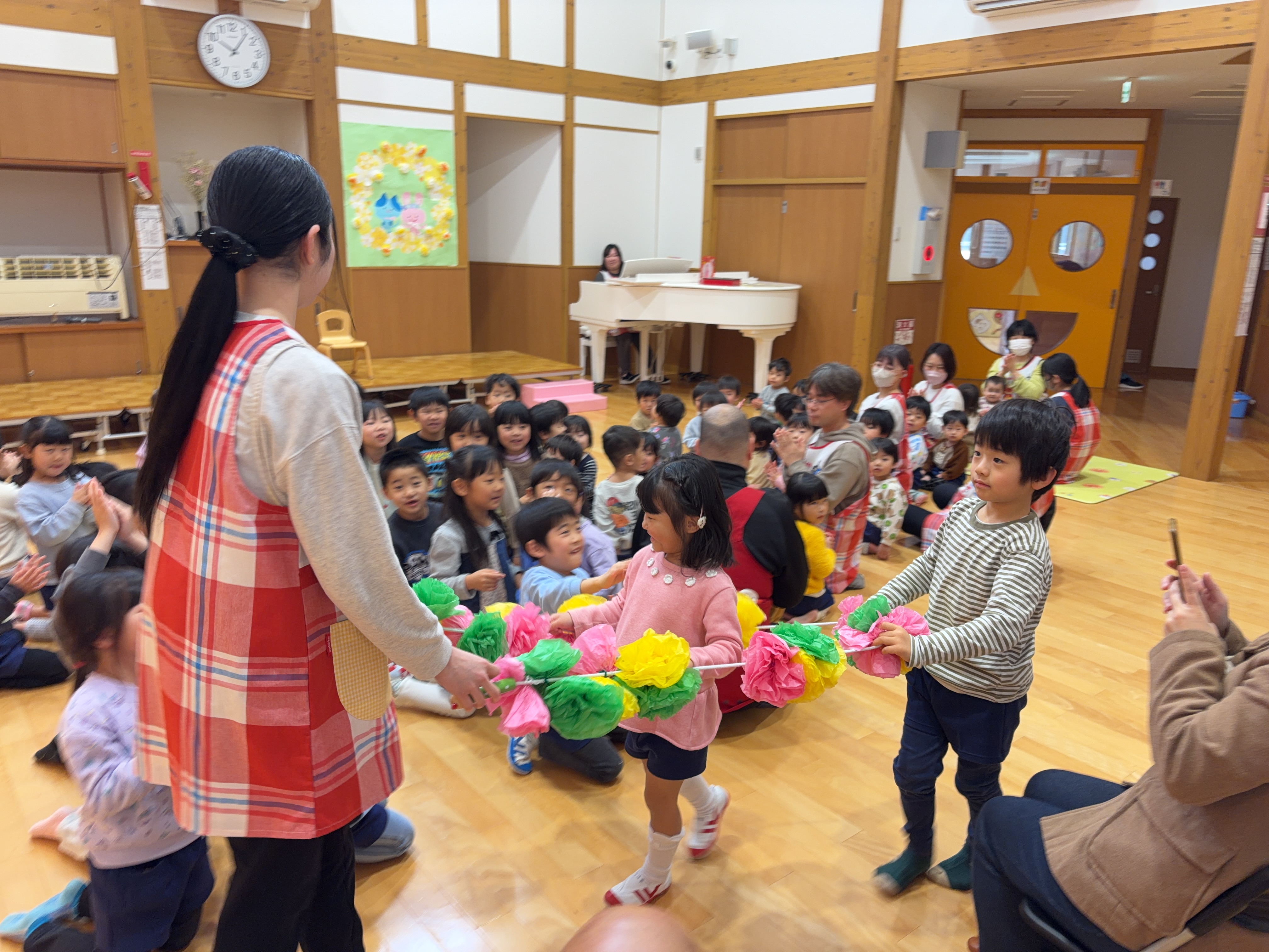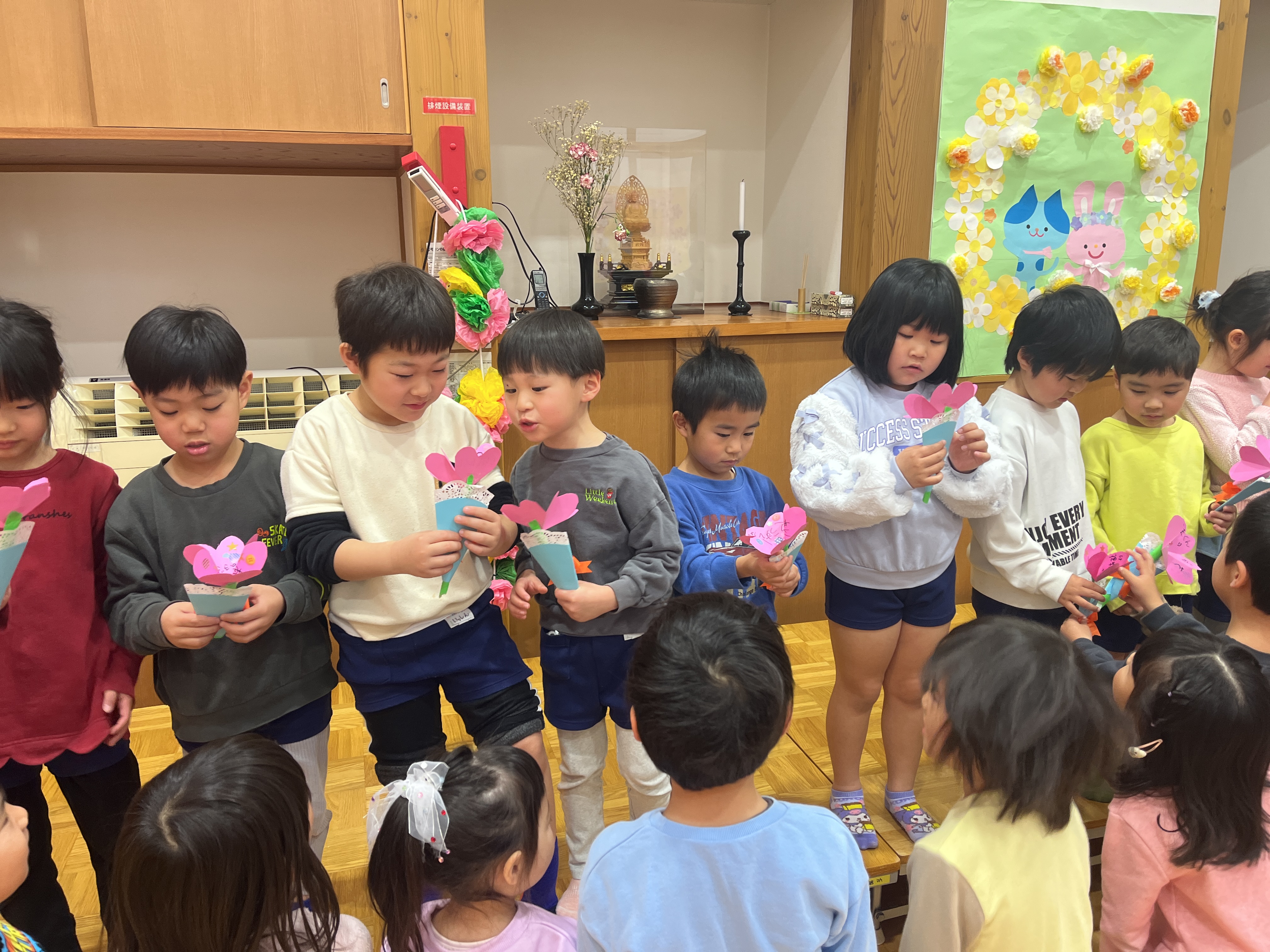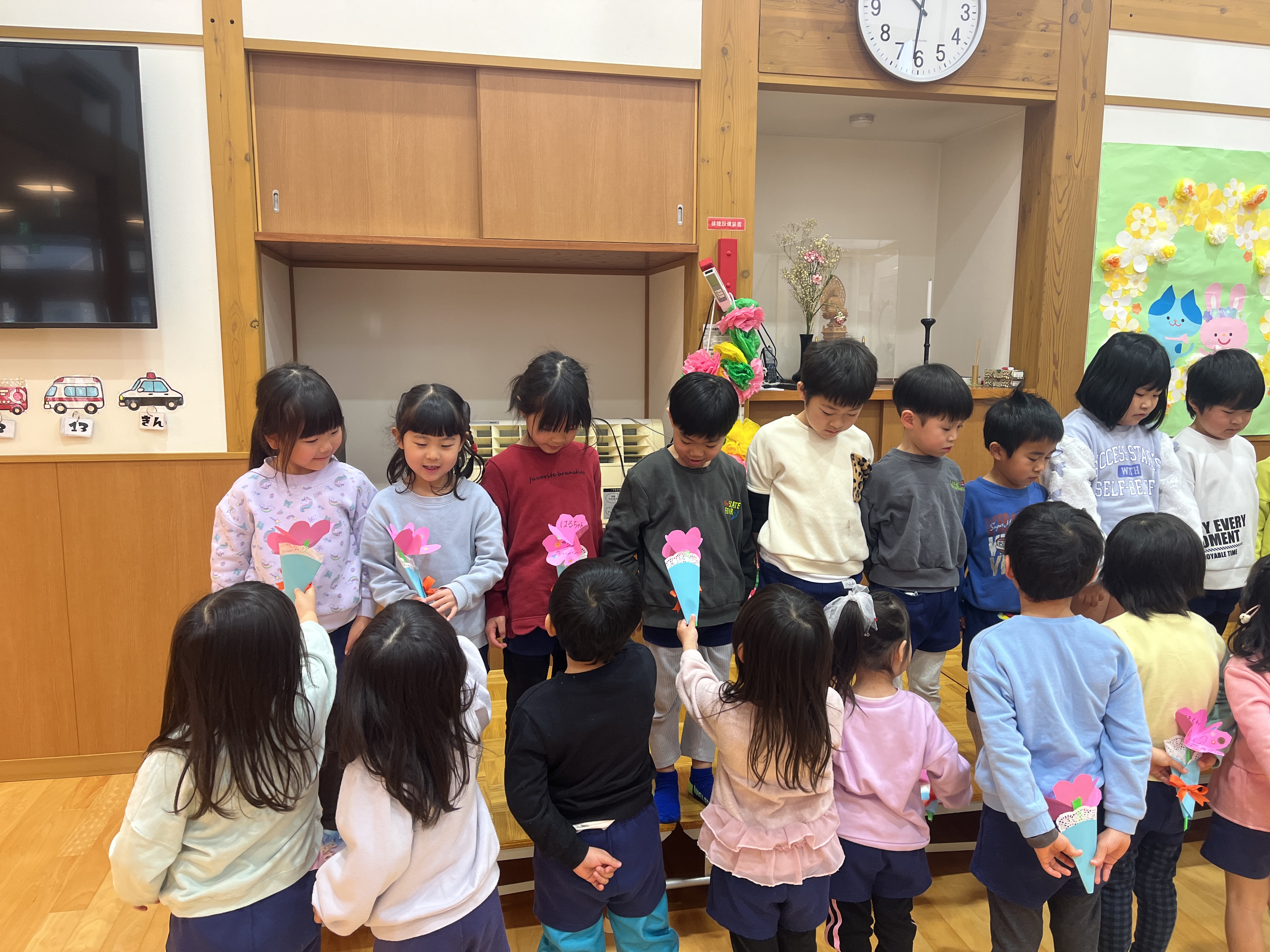 - 3月生まれのお友だちをお花の電車で迎えに行きました。
