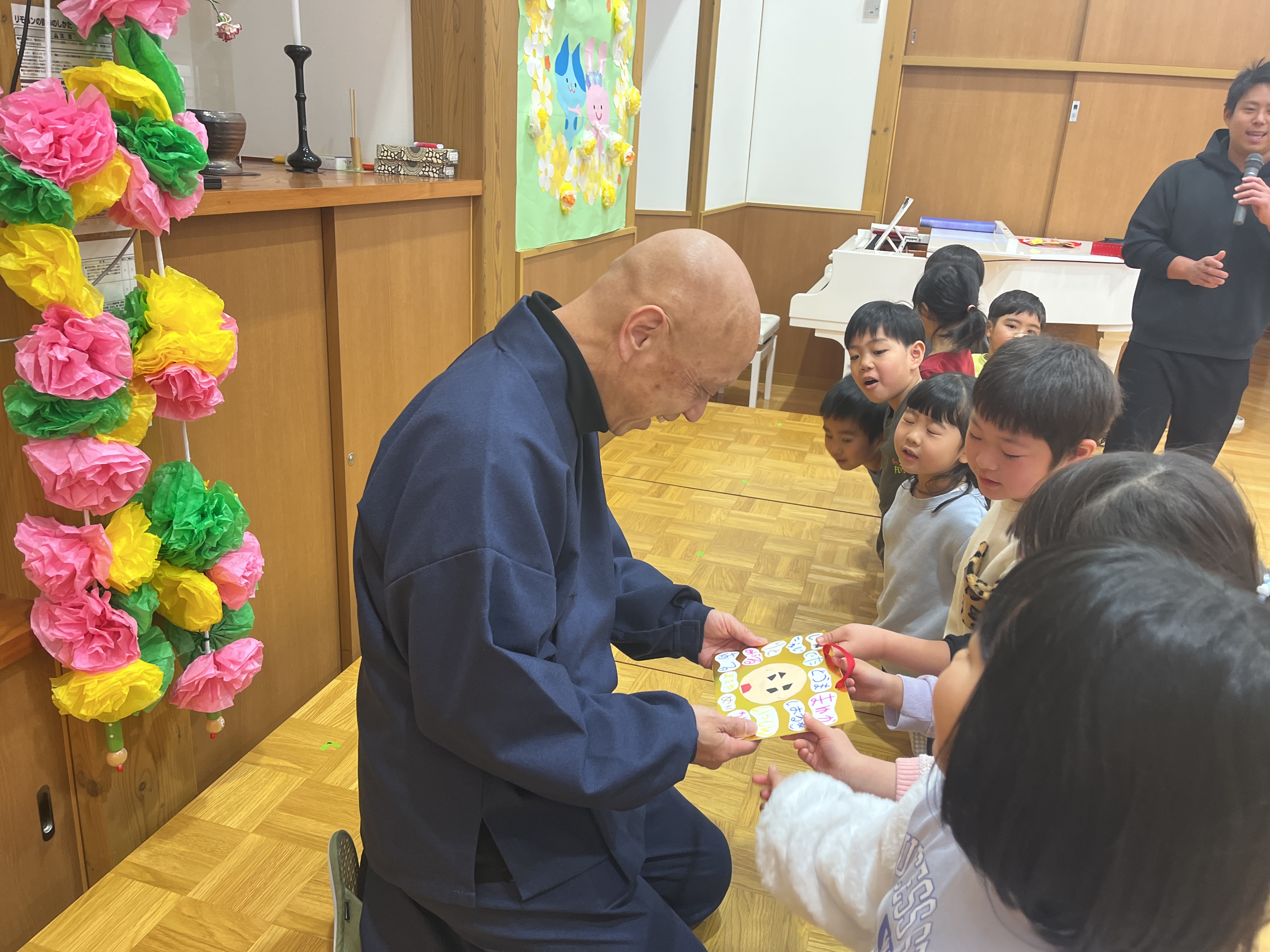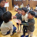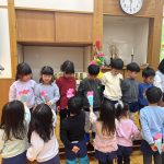 - ぱんだ組から、きりん組にプレゼントを渡しました。